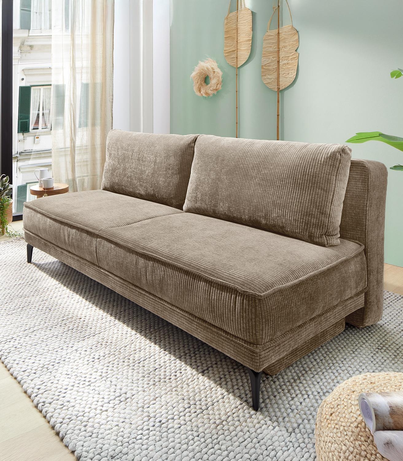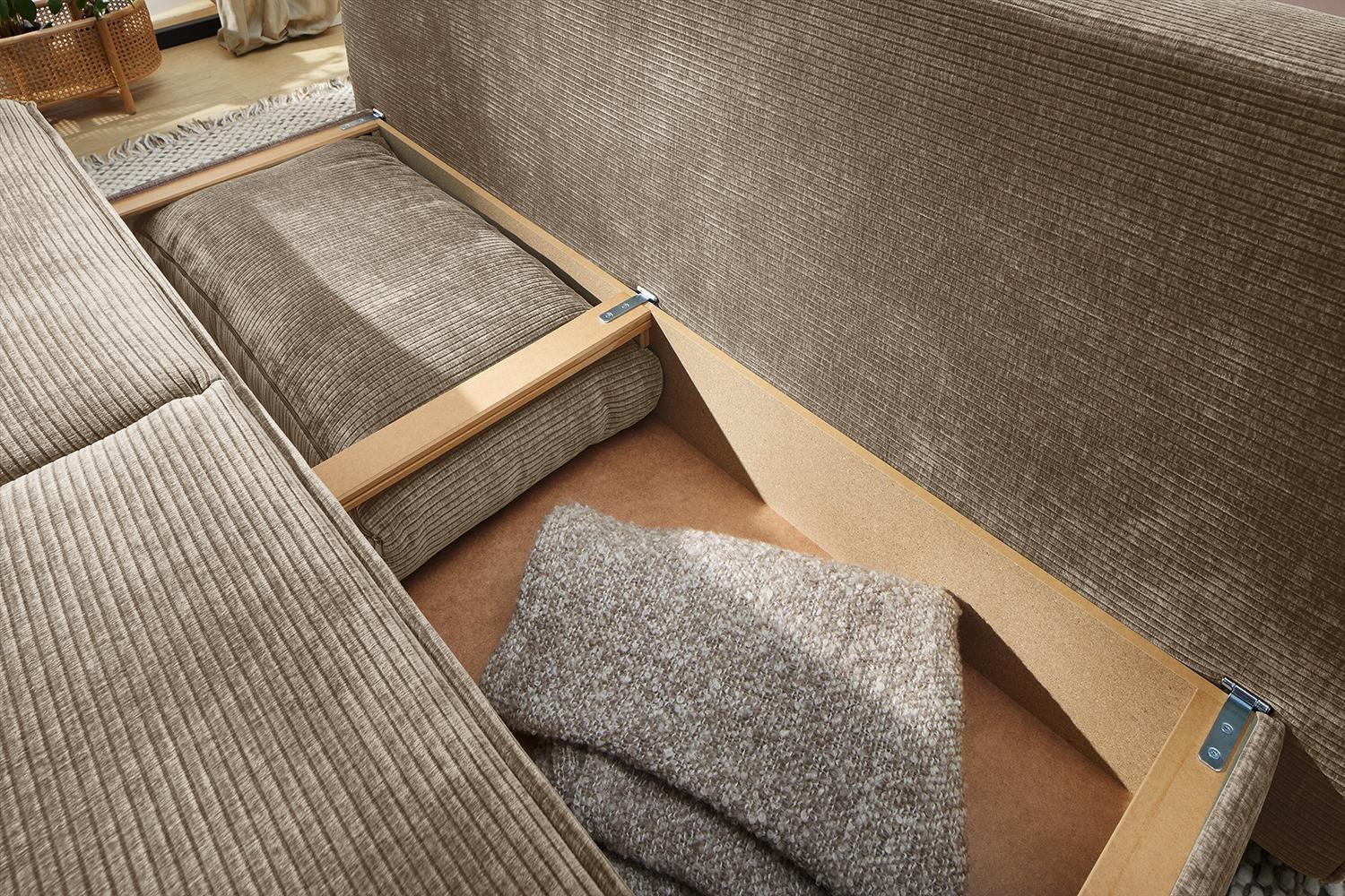 Taupe - Cord - mit Gästebettfunktion und Bettkasten - mit Kissen