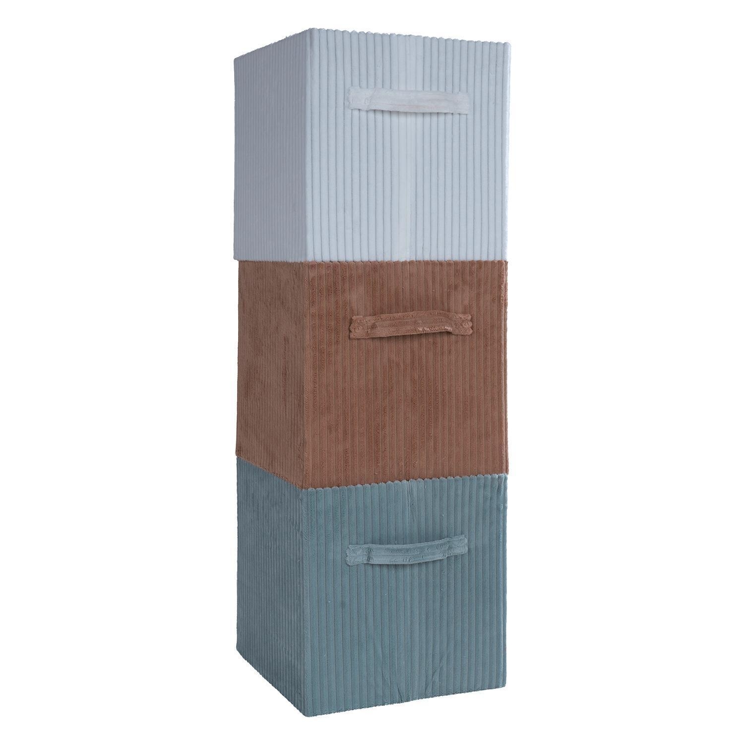 Die Aufbewahrungsbox BELERA in Beige ist eine praktische und stilvolle Ergänzung für Ihr Zuhause. Aus Polyester gefertigt und mit den Maßen 29 cm für die Breite, Höhe als auch die Tiefe, bietet die Box genügend Platz für Ihre Gegenstände. Dank ihres faltbaren Designs lässt sie sich bei Nichtgebrauch platzsparend verstauen. Ein seitlicher Griff ermöglicht zudem ein einfaches Herausziehen und Transportieren. Die moderne Cordoptik verleiht der Box eine ansprechende, strukturierte Oberfläche und macht sie zu einem dekorativen Hingucker in jedem Raum.