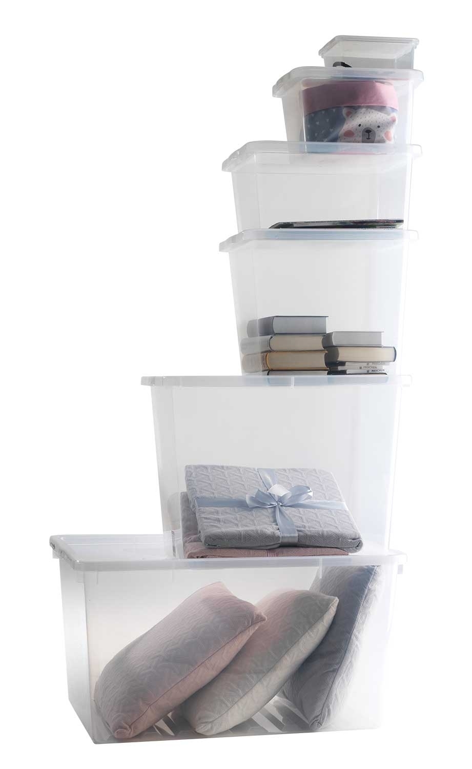 Transparent - Kunststoff - 80 Liter - stapelbar - mit Deckel