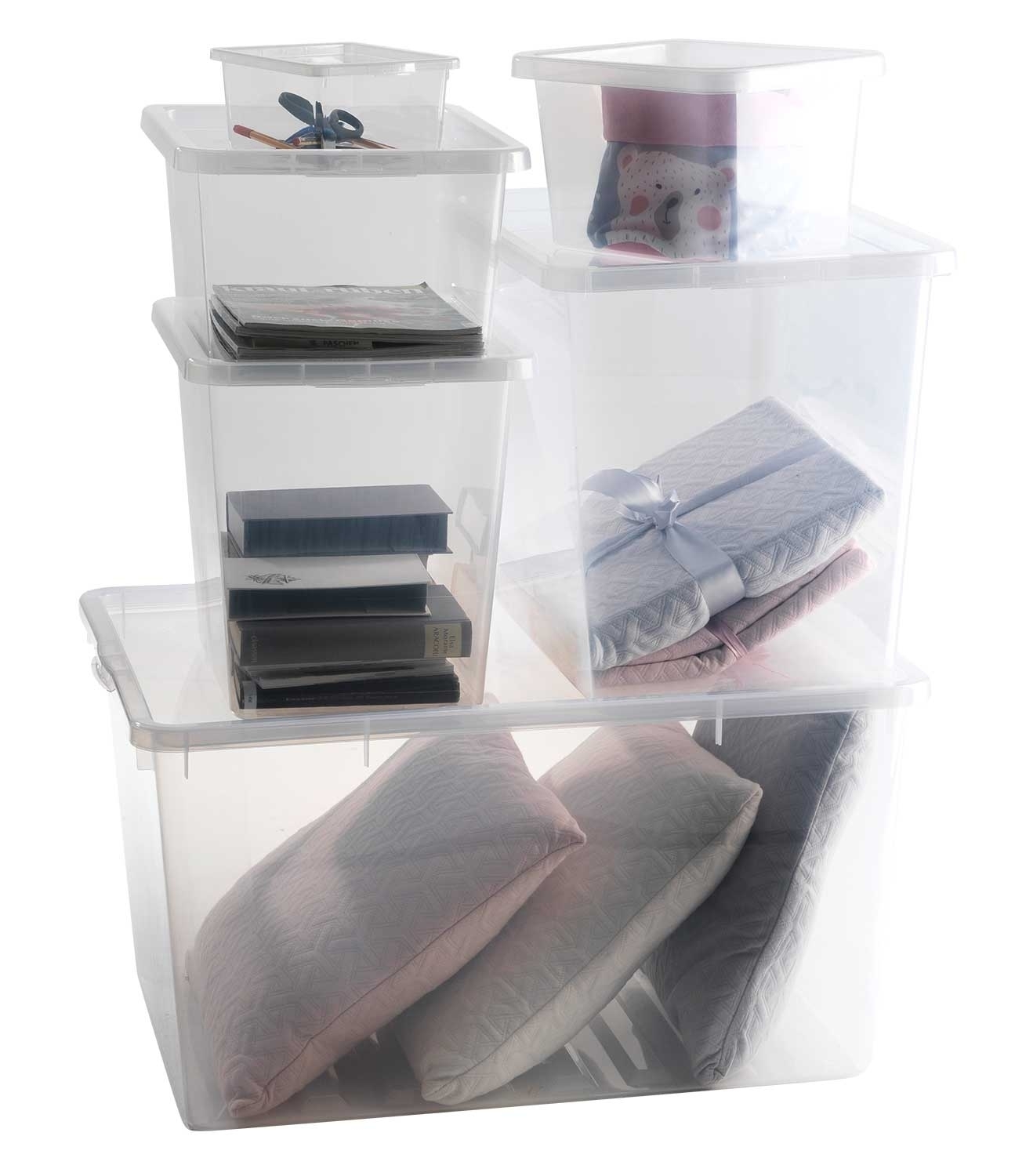 Transparent - Kunststoff - 29 Liter - stapelbar - mit Deckel