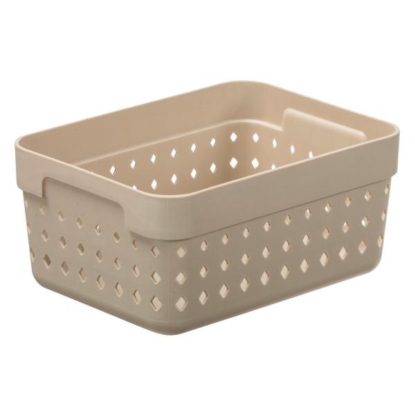 Diese praktische Aufbewahrungsbox SEOUL in Beige überzeugt mit funktionalem Design und dekorativer Lochstruktur im Rautenmuster. Mit den Maßen 15,8 x 11,8 x 7,3 cm bietet sie vielseitigen Stauraum für Bad, Küche oder Büro. Die seitlichen Griffe sorgen für bequemes Tragen, und dank der stapelbaren Form lässt sich die Box platzsparend verstauen. Ideal für alle, die Ordnung stilvoll gestalten möchten.
