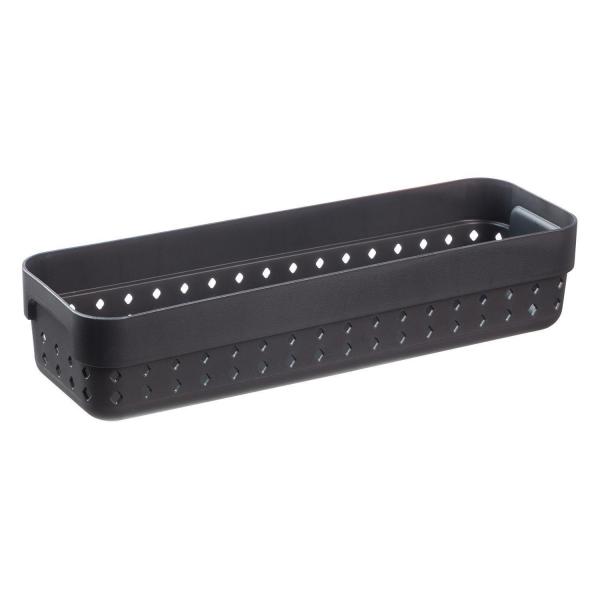 Diese praktische Aufbewahrungsbox SEOUL in schwarz überzeugt mit funktionalem Design und dekorativer Lochstruktur im Rautenmuster. Mit den Maßen 23,8 x 7,8 x 5 cm bietet sie vielseitigen Stauraum für Bad, Küche oder Büro. Die seitlichen Griffe sorgen für bequemes Tragen, und dank der stapelbaren Form lässt sich die Box platzsparend verstauen. Ideal für alle, die Ordnung stilvoll gestalten möchten.