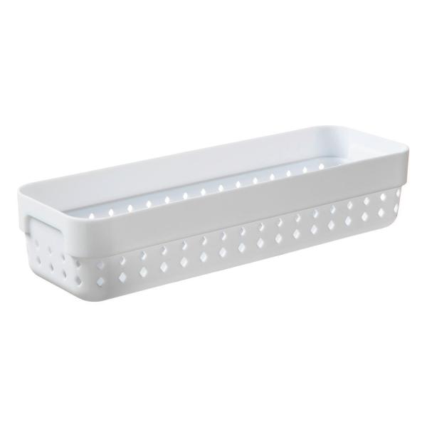 Diese praktische Aufbewahrungsbox SEOUL in Weiß überzeugt mit funktionalem Design und dekorativer Lochstruktur im Rautenmuster. Mit den Maßen 23,8 x 7,8 x 5 cm bietet sie vielseitigen Stauraum für Bad, Küche oder Büro. Die seitlichen Griffe sorgen für bequemes Tragen, und dank der stapelbaren Form lässt sich die Box platzsparend verstauen. Ideal für alle, die Ordnung stilvoll gestalten möchten.