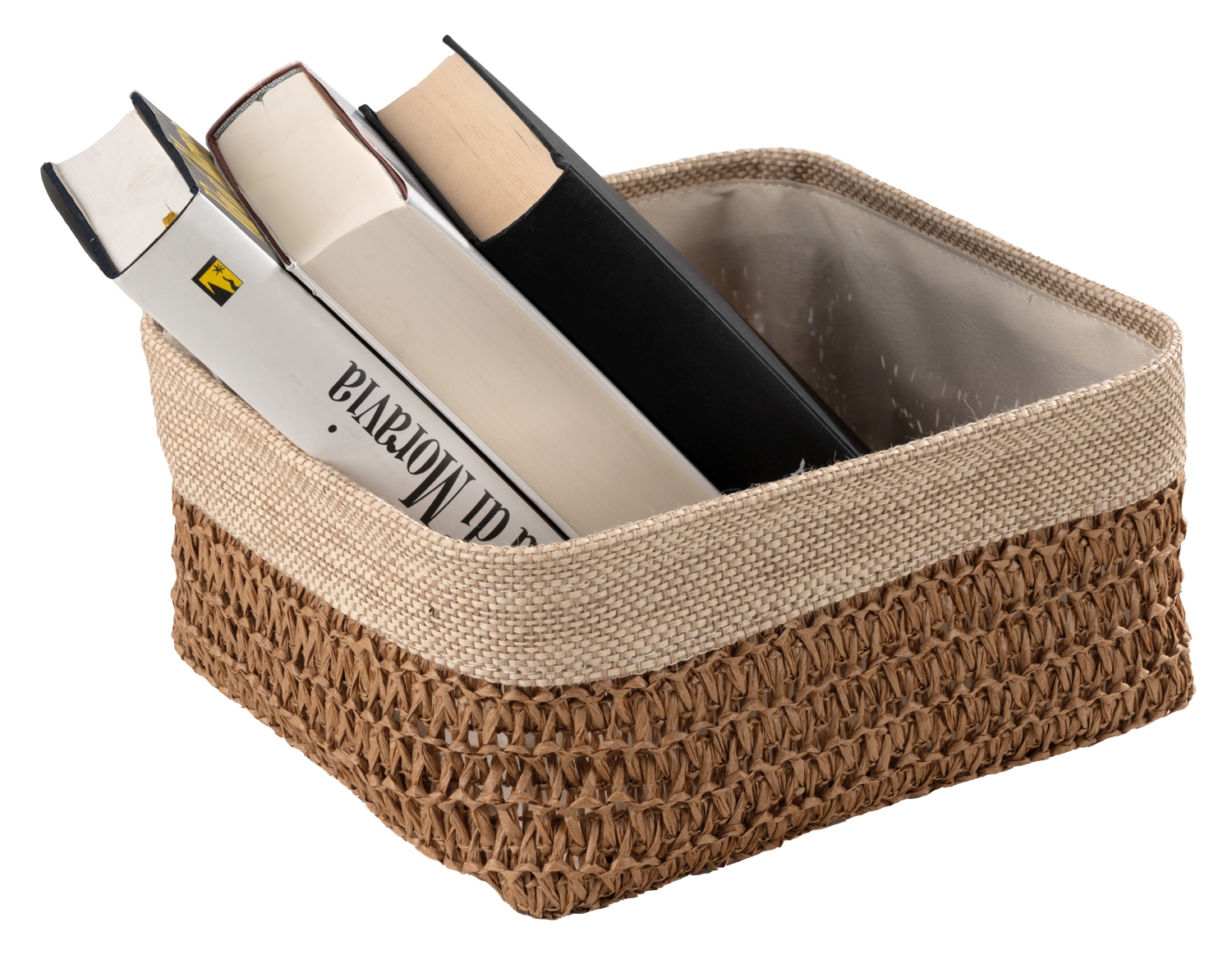 Der Aufbewahrungskorb BEGONIA in Braun bietet eine stilvolle Lösung für die Aufbewahrung von Büchern, Kunstpflanzen und vielen weiteren Gegenständen. Mit einer Breite von 25,5 cm und einer Tiefe von 25,5 cm eignet er sich perfekt für kleinere Räume oder Regale. Hergestellt aus Papier, ist der Korb leicht und dennoch stabil. Da er ohne Griffe kommt, wirkt das Design minimalistisch und dezent, was ihn leicht in verschiedene Wohnstile integrieren lässt.