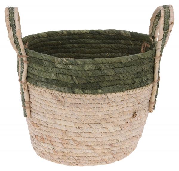 Beige - Grün - 23 x 19 cm - Stroh - mit Tragegriffen