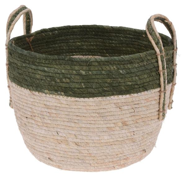 Beige - Grün - 31,5 x 25,5 cm - Stroh - mit Tragegriffen