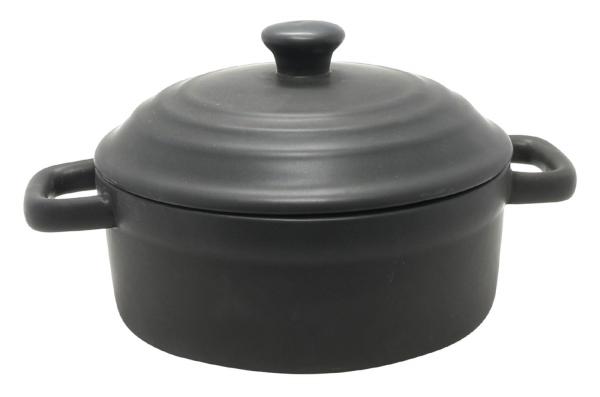 Schwarz - Steingut - Ø 16 cm - mit Deckel