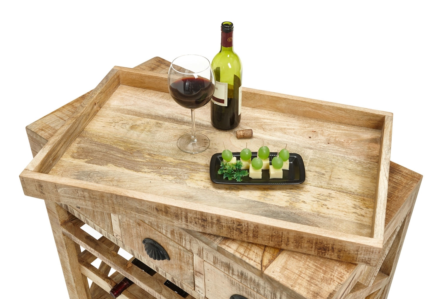 | Lieferumfang: | 1 Barwagen mit 3 Schubladen und Muschelgriffen, mit 4 Flaschenhalterungen und fester Ablagefläche |