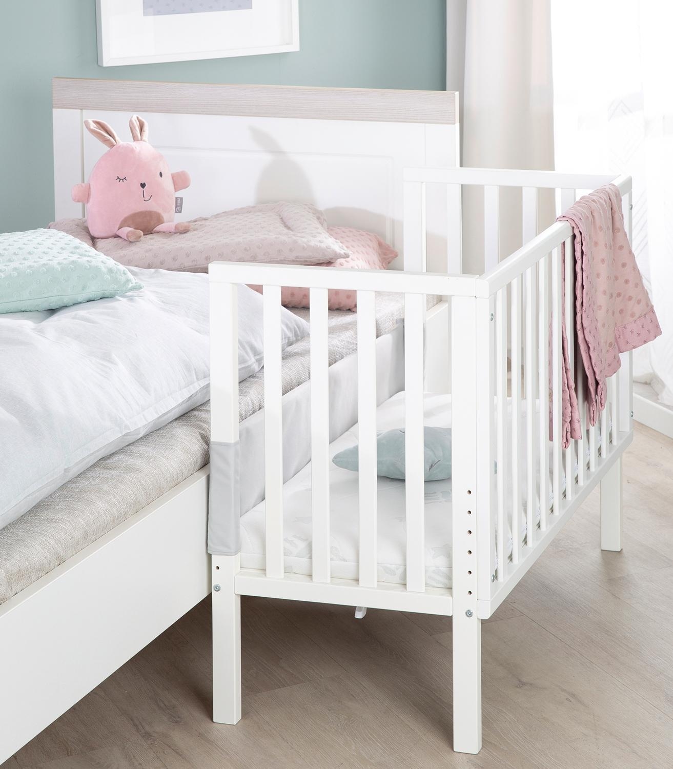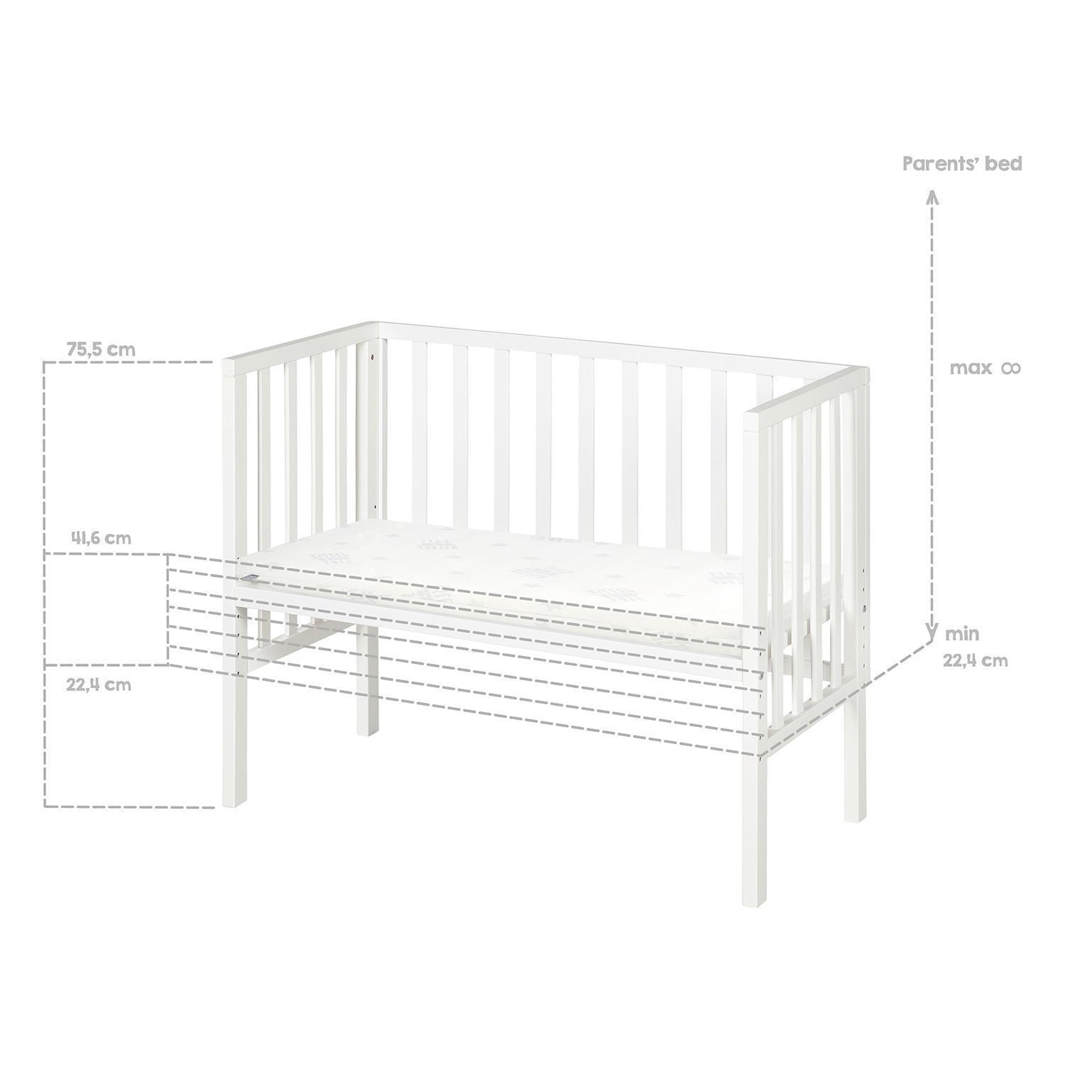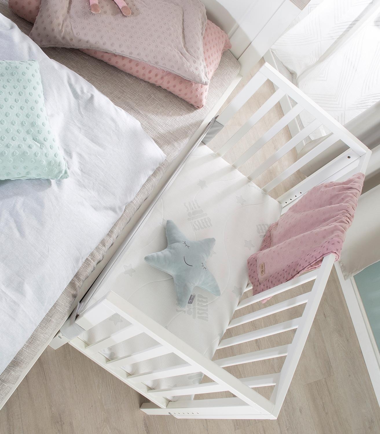 | Lieferumfang: | 1 Beistellbett mit höhenverstellbarem Lattenrost, Matratze und Rausfallschutz |