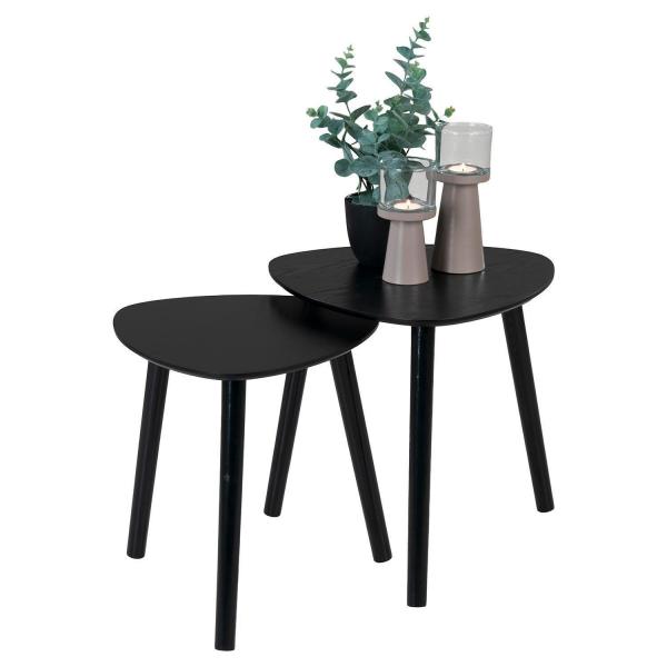 Das Beistelltisch-Set ZURI besteht aus zwei Tischen in Schwarz matt. Es handelt sich um ein zweiteiliges Set in zwei verschiedenen Größen. Die Tische verfügen über eine besondere Form.