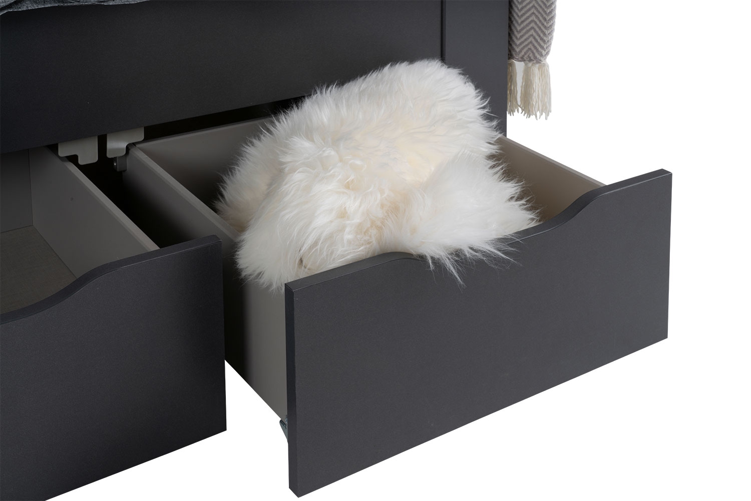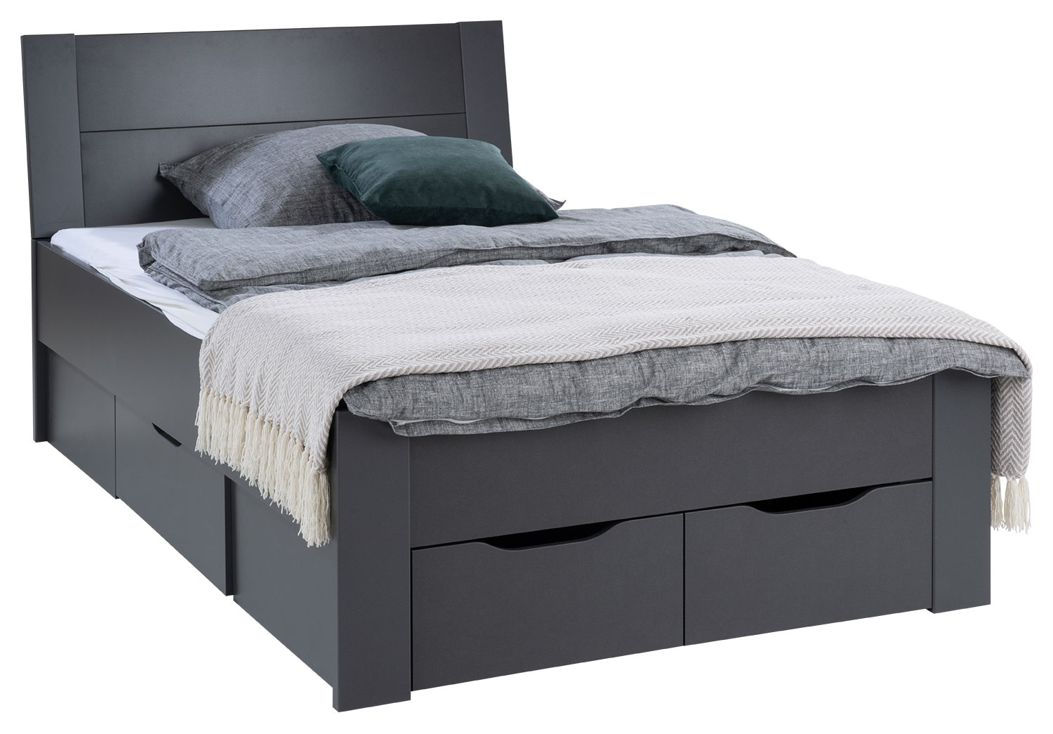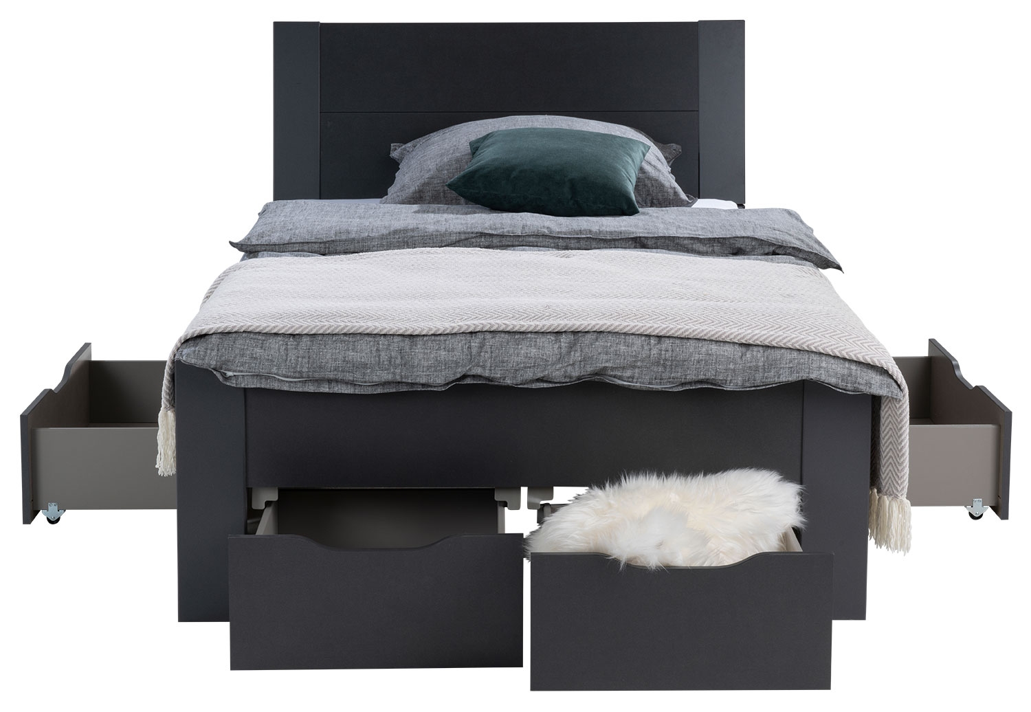 | Lieferumfang: | 1 Bettgestell mit 4 Schubladen und Paneelkopfteil. Matratze und Lattenrost sind nicht enthalten |