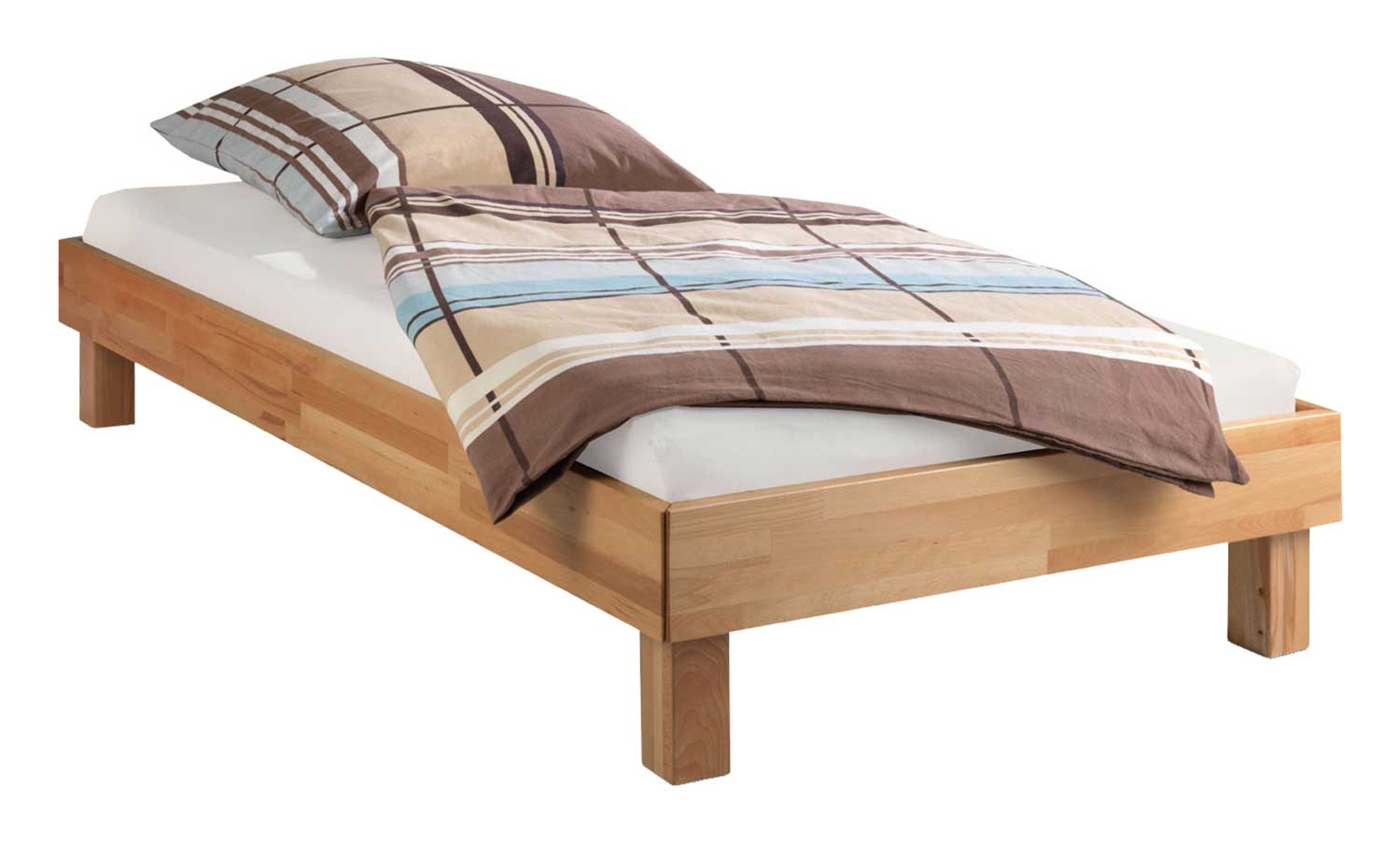 Kein Schnickschnack, Schnörkel, Firlefanz, sondern ein schlichtes Bettgestell aus Massivholz. Das Bett ist so einfach wie möglich und genau richtig so! Kernbuche Massivholz Minimalistisches Design und höchste Qualiät, das waren die Leitsätze bei der Konstruktion unseres Bettgestells. So ist dieses Bett reduziert auf das Wesentliche: Es bildet den Rahmen für Ihre Matratze - so schlicht und zeitlos, dass es nie aus der Mode kommt. Dabei sieht man dem Modell seine gute Qualität an: Gefertigt aus besonders stabilem Massivholz der Kernbuch und hochwertig verarbeitet ist dieses Bett gemacht für die Ewigkeit. Angenehme Maße Hier können Sie sich ausbreiten: Das Einzelbett hat Übergröße, 100x200 cm Liegefläche bieten genügend Platz für aktive Schläfer! Zum Glück braucht macht nicht viel! Schlichtes Design, ausgefeilte Verarbeitung und hochwertige Materialien lassen unser Doppelbett zu einem unserer Topseller werden. Spüren Sie den Unterschied und möbeln Sie Ihre Schlafgemach mal wieder kräftig auf.