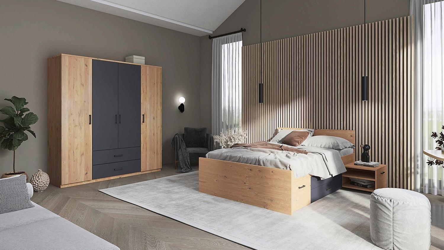 - Bettgestell in Artisan Eiche Dekor