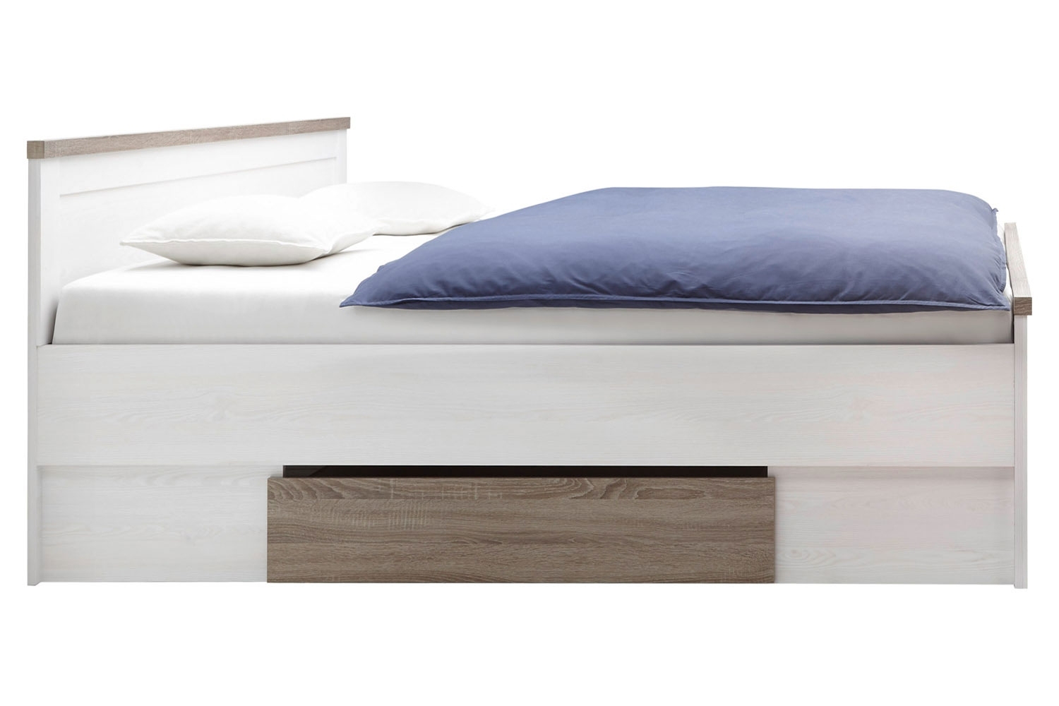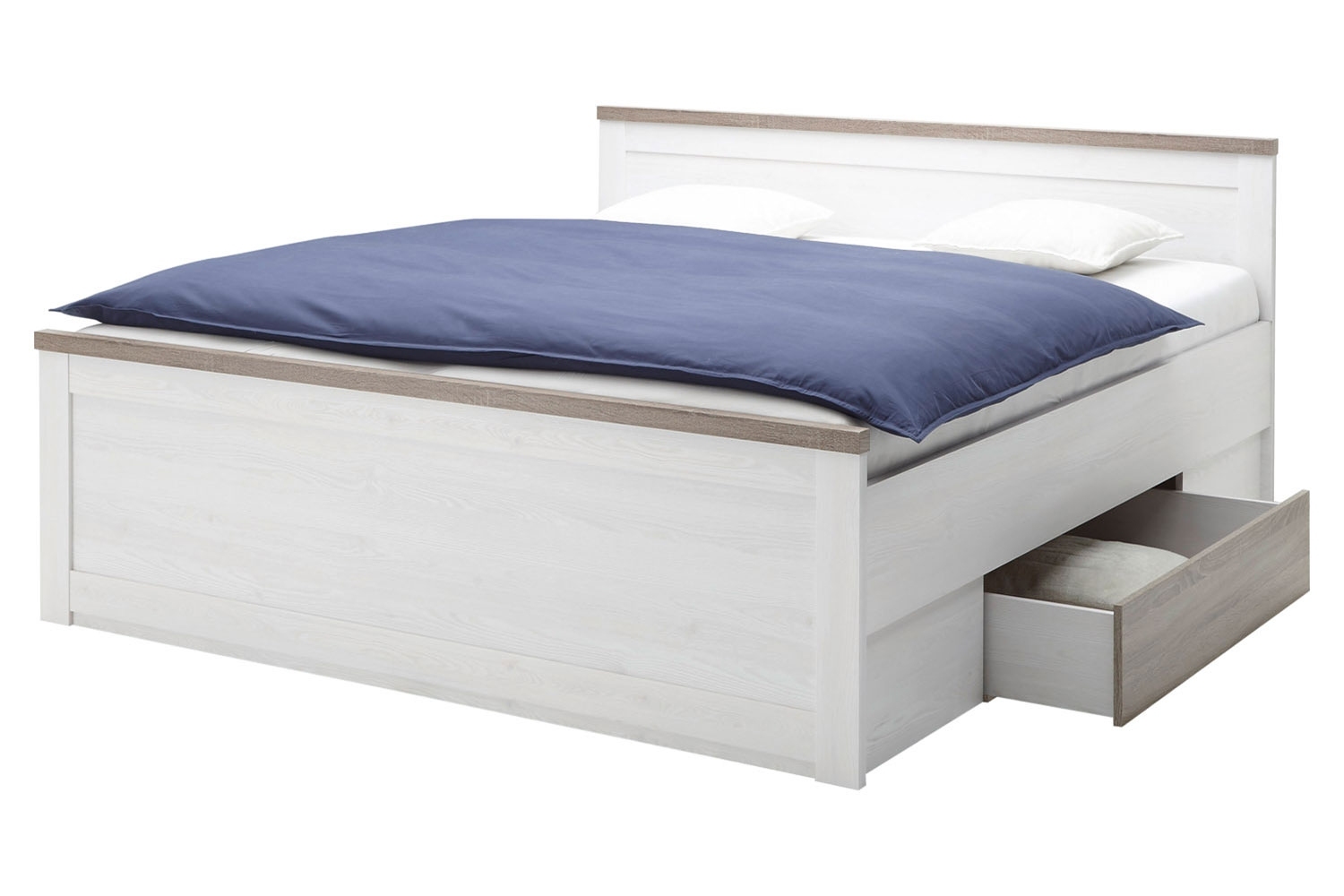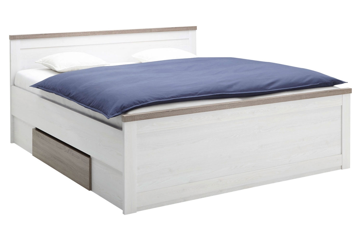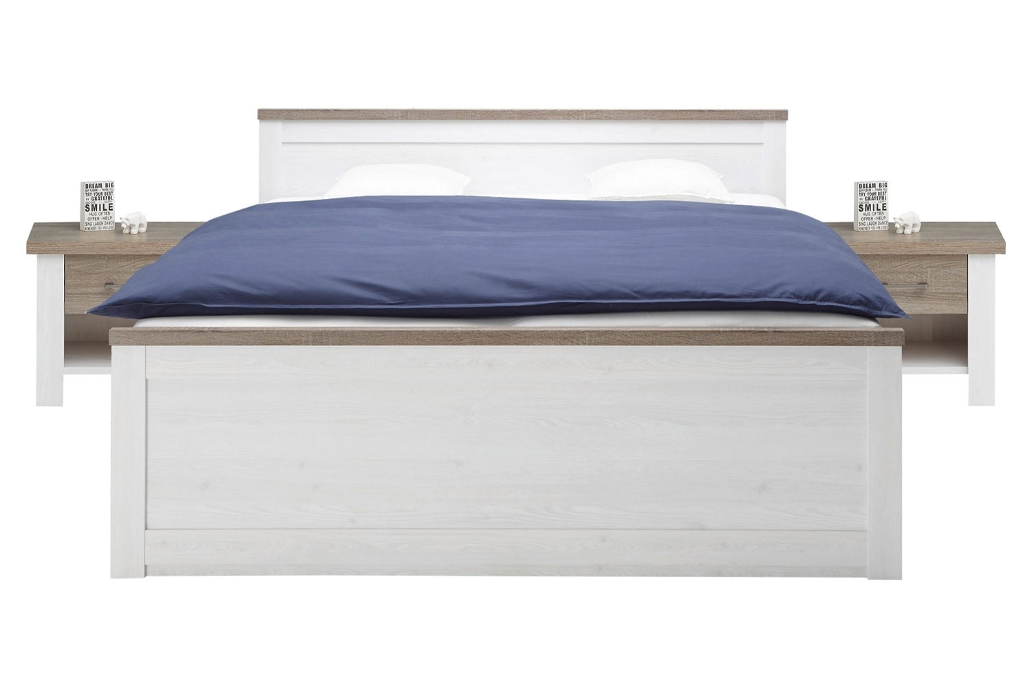 180 x 200 cm - Pinie weiß Dekor - Trüffel Dekor - mit 2 Nachttischen