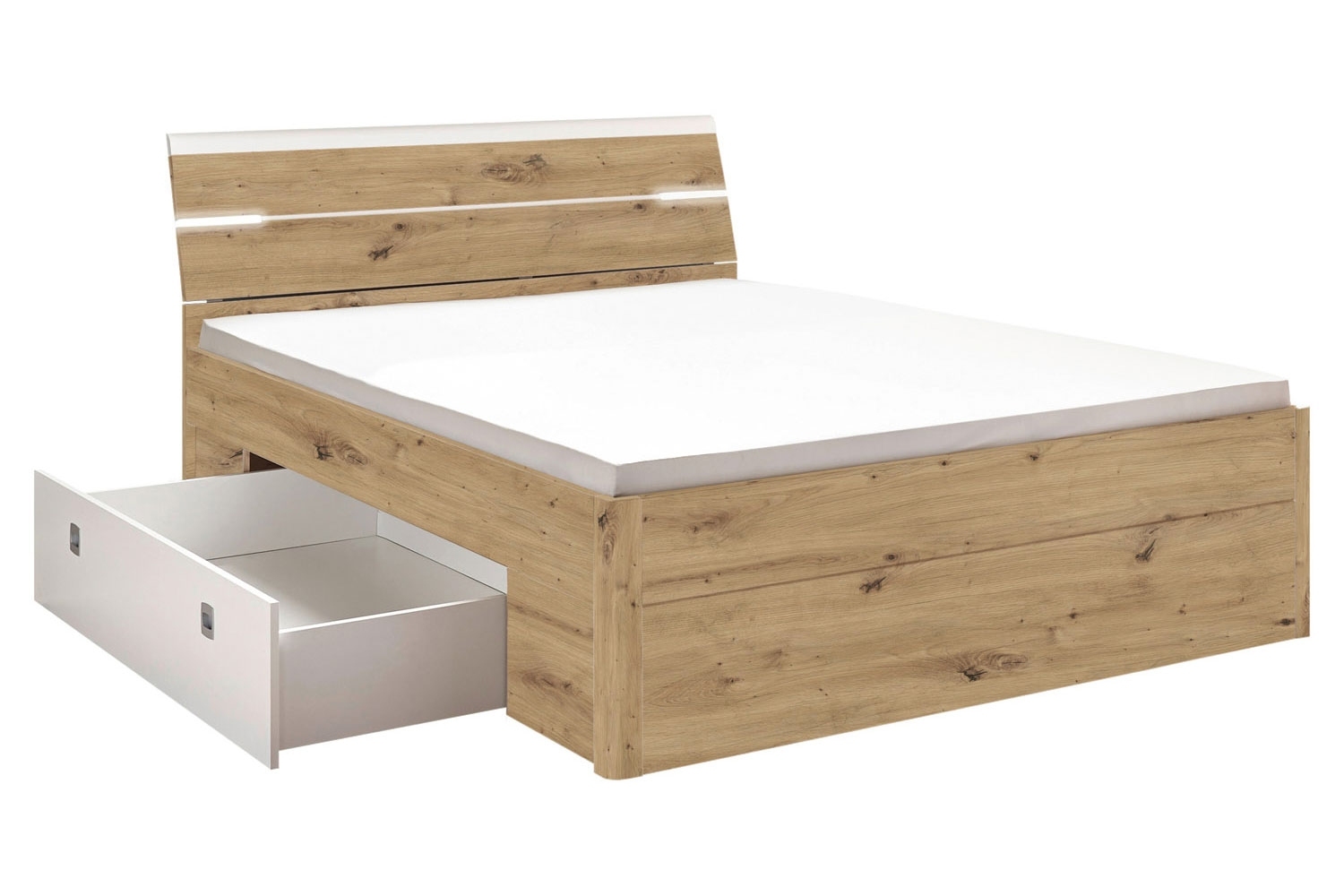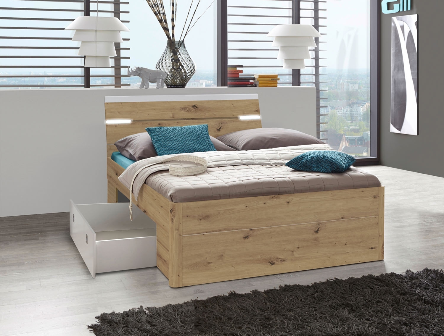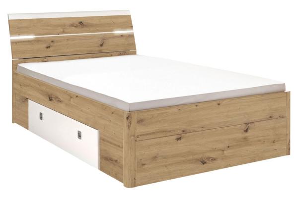 140 x 200 cm - Artisan Eiche Dekor - Weiß matt - mit LED-Beleuchtung