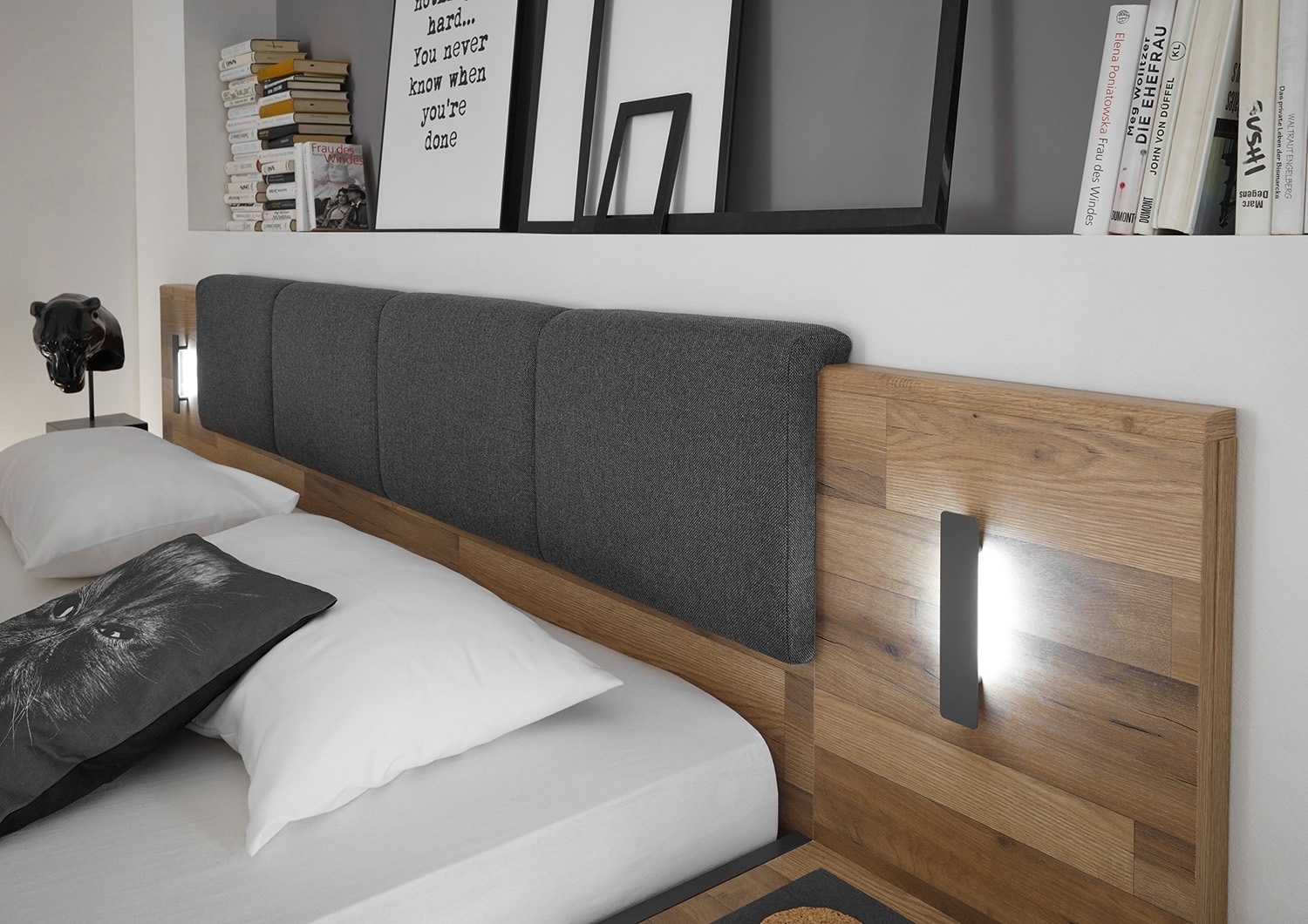 | Lieferumfang: | 1 Bettgestell mit 2 Nachttischen, Polsterkopfteil und LED-Beleuchtungen. Matratze und Lattenrost separat erhältlich |