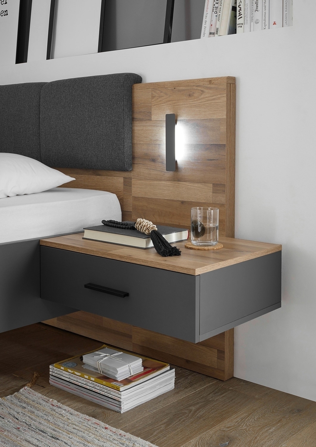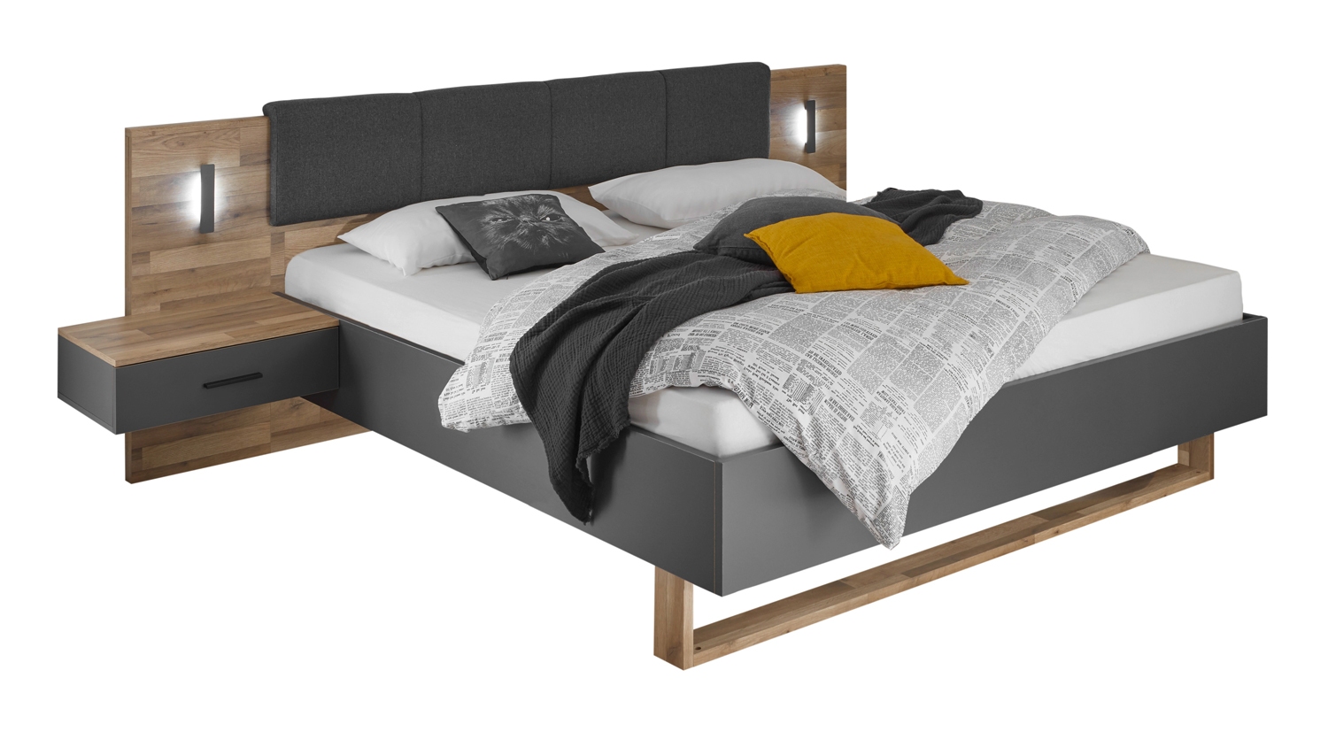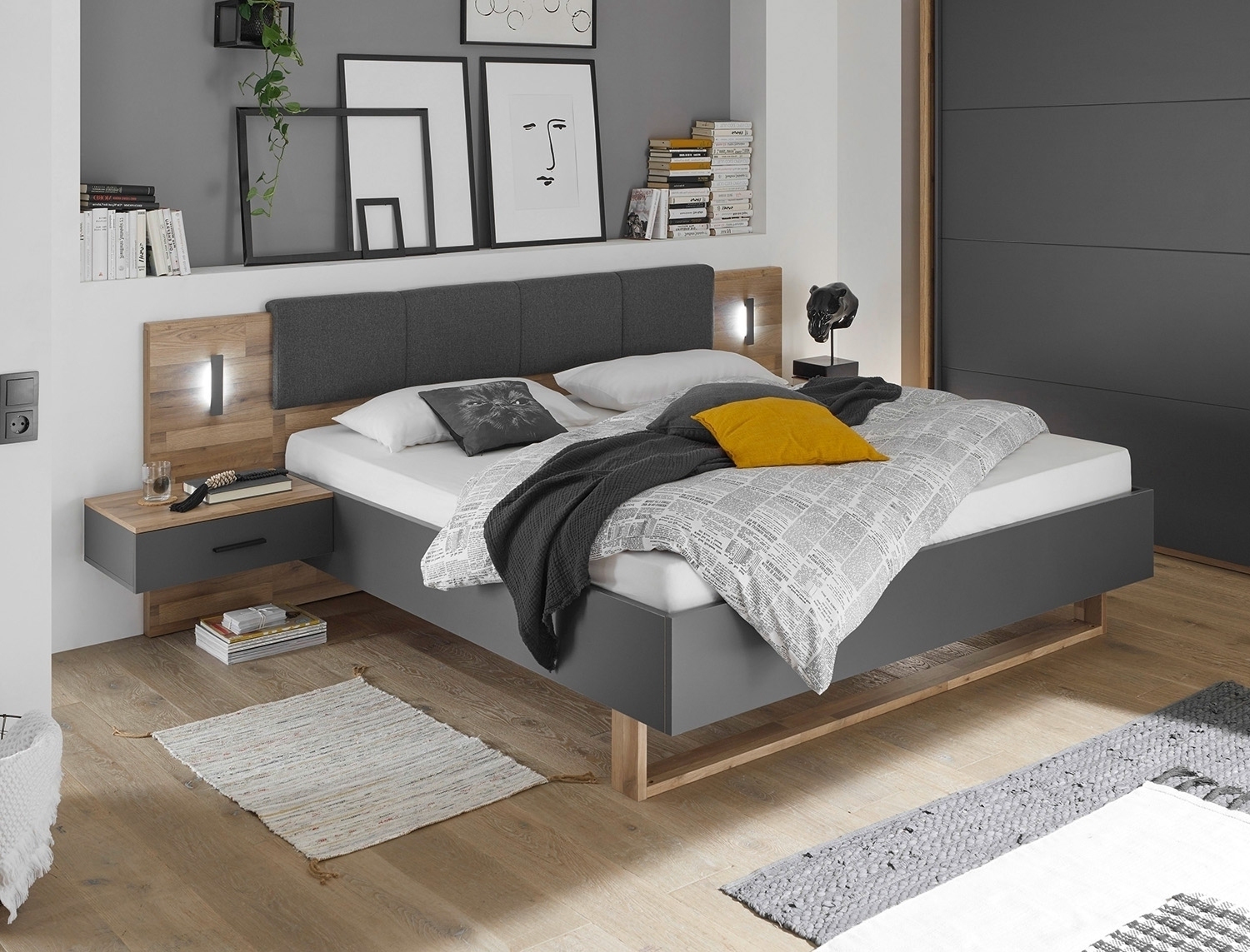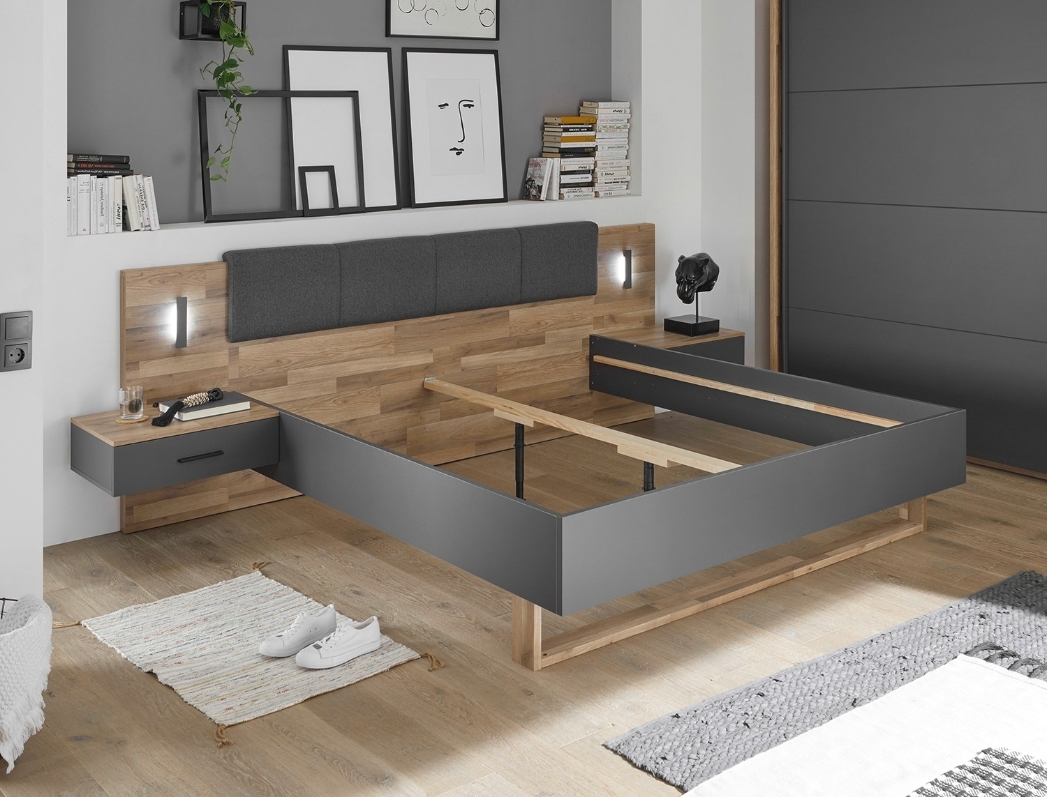 Graphit Dekor - Montana Eiche Dekor - 180 x 200 cm - mit 2 Nachttischen