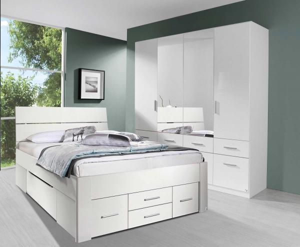 Alpinweiß matt - 140 x 200 cm - mit 6 Schubladen
