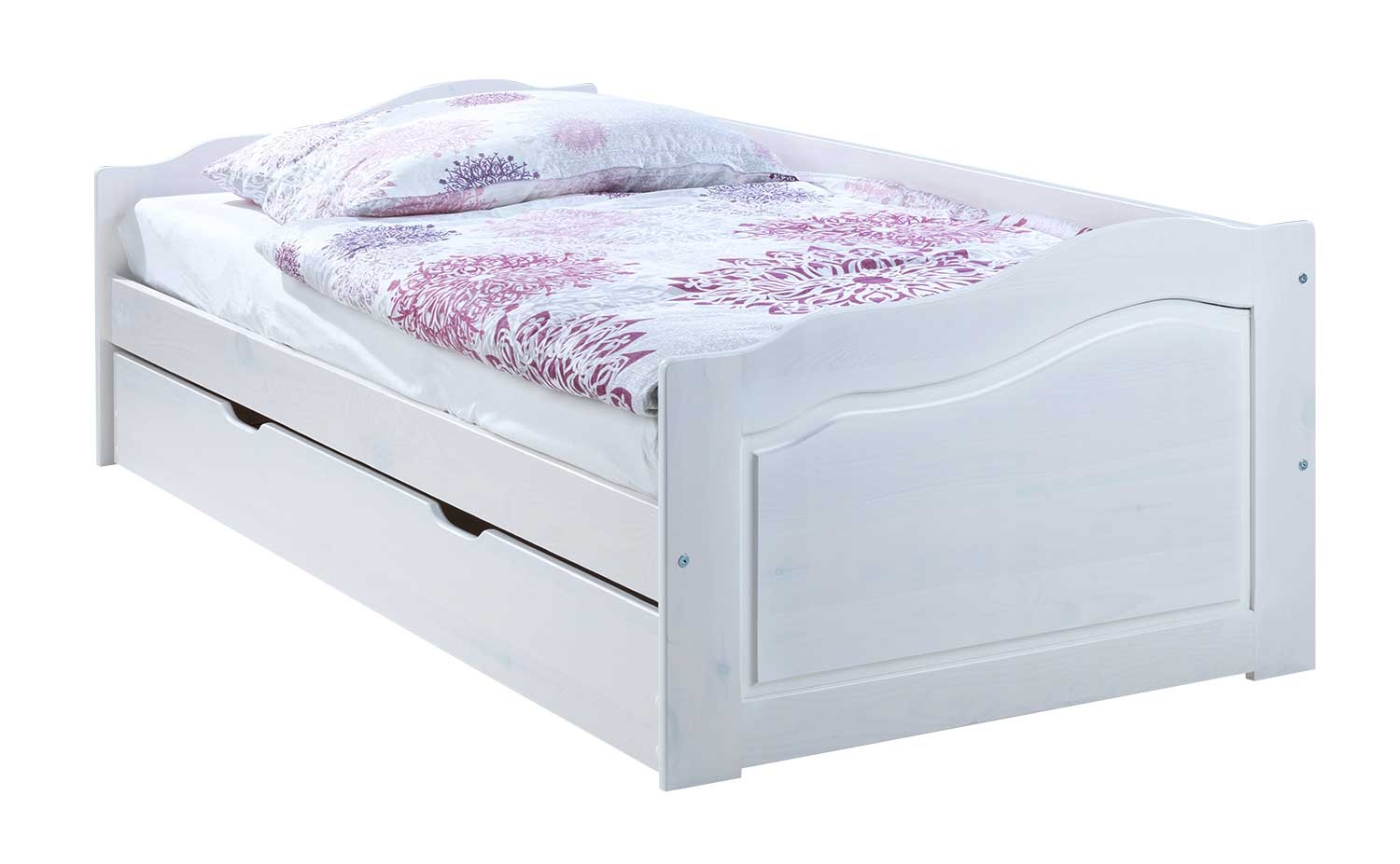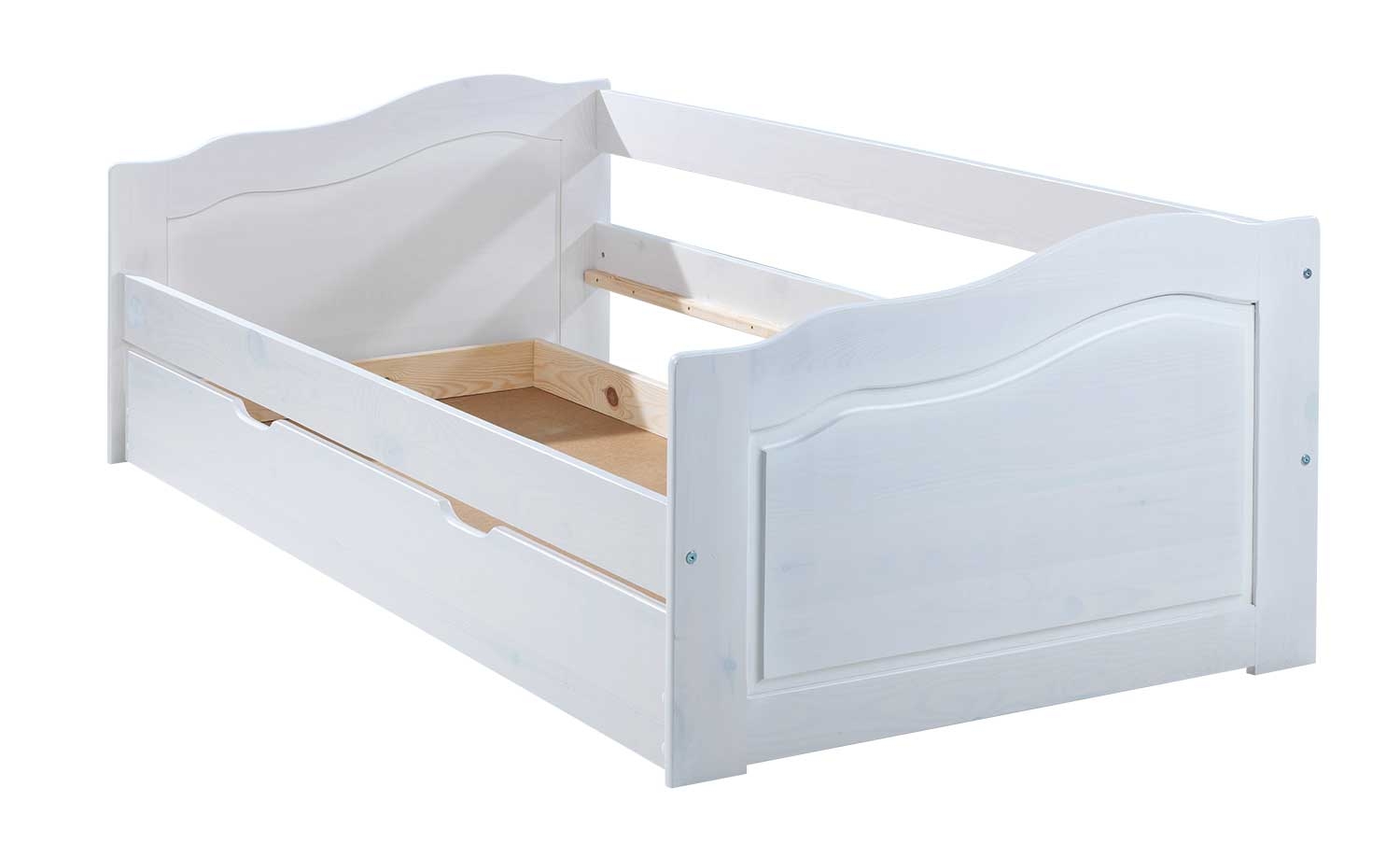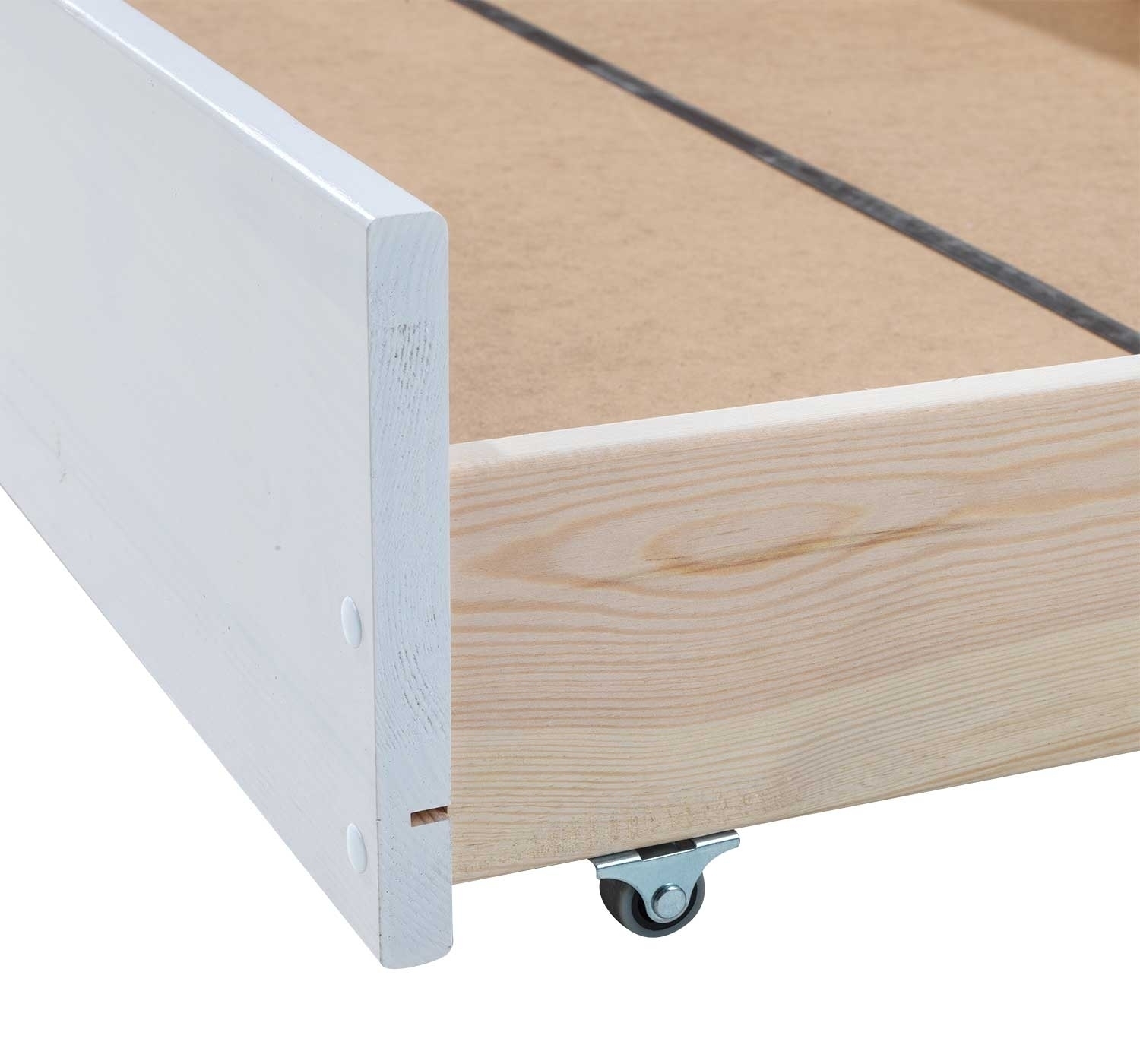 Der Bettkasten von Home4You in strahlendem Weiß misst 197 x 79 cm und besteht aus massiver Kiefer. Hochwertige Verarbeitung trifft auf praktischen Nutzen durch die angebrachten Rollen. Dieses Möbelstück vereint Stil und Funktionalität für zusätzlichen Stauraum mit Leichtigkeit.