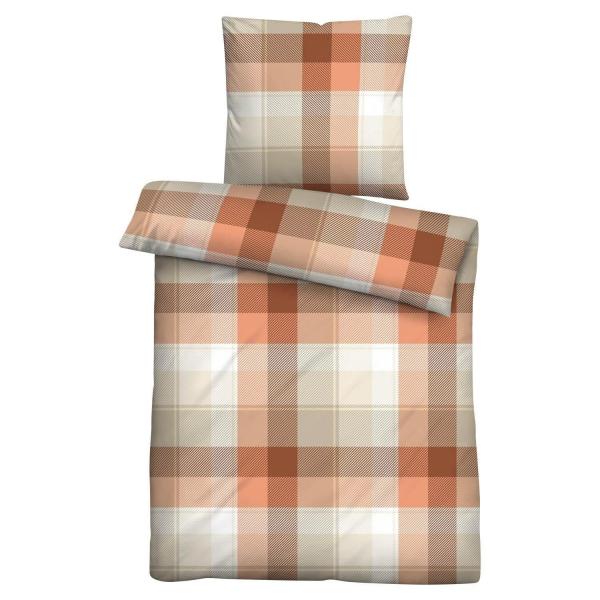Die Biber-Bettwäsche BELAMIS der Marke biberna präsentiert sich in einem attraktiven Karomuster in Orange. Das Set besteht aus einem Bettbezug und einem Kissenbezug, die beide aus einer Mischung von Baumwolle und Polyester gefertigt sind. Die praktische Verschlussart mit Reißverschluss erleichtert das Beziehen und Abziehen der Bettwäsche. Der Bettbezug hat eine großzügige Größe von 135 x 200 cm, während der Kissenbezug eine Größe von 80 x 80 cm aufweist. Die Materialzusammensetzung beträgt 60 % Baumwolle und 40 % Polyester.