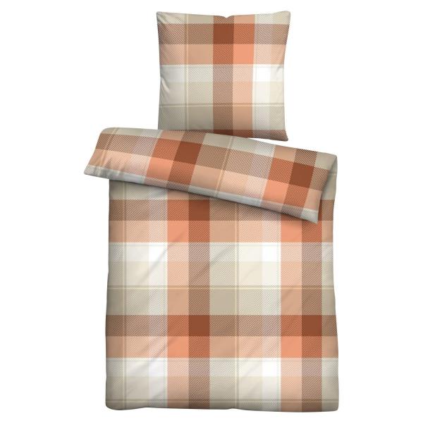 Die Biber-Bettwäsche BELAMIS der Marke biberna präsentiert sich in einem attraktiven Karomuster in Orange. Das Set besteht aus einem Bettbezug und einem Kissenbezug, die beide aus einer Mischung von Baumwolle und Polyester gefertigt sind. Die praktische Verschlussart mit Reißverschluss erleichtert das Beziehen und Abziehen der Bettwäsche. Der Bettbezug hat eine großzügige Größe von 155 x 220 cm, während der Kissenbezug eine Größe von 80 x 80 cm aufweist. Die Materialzusammensetzung beträgt 60 % Baumwolle und 40 % Polyester.
