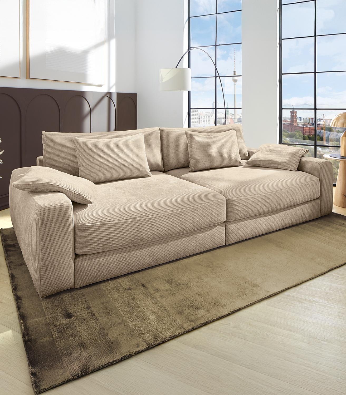 | Lieferumfang: | 1 Bigsofa mit 2 großen Rückenkissen, 2 mittelgroßen Rückenkissen und 2 Zierkissen |