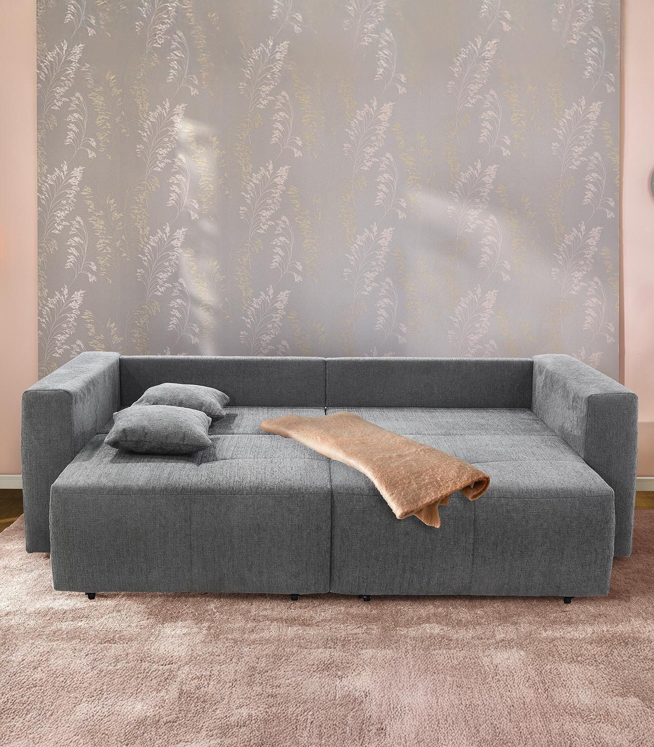 | Lieferumfang: | 1 Bigsofa mit 2 Bettkästen, Gästebettfunktion, 2 Rückenkissen und 2 Zierkissen |