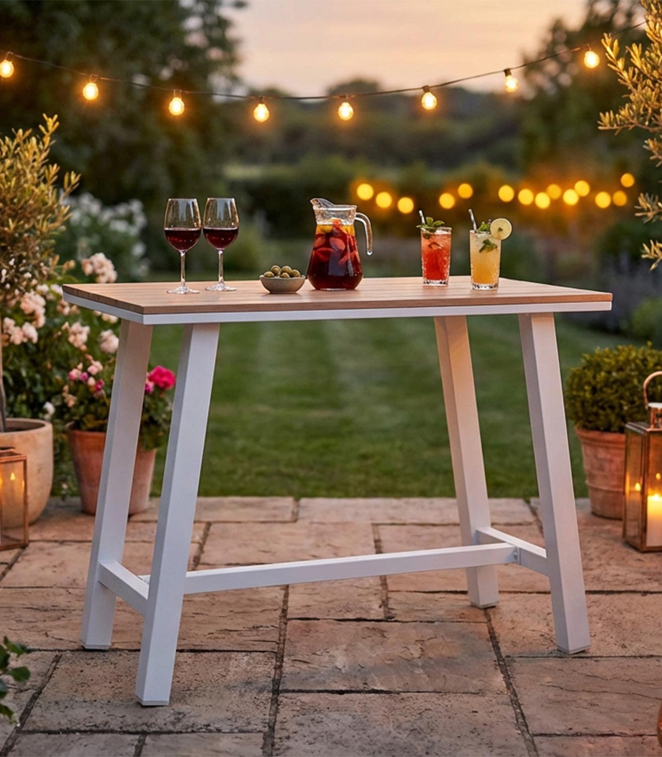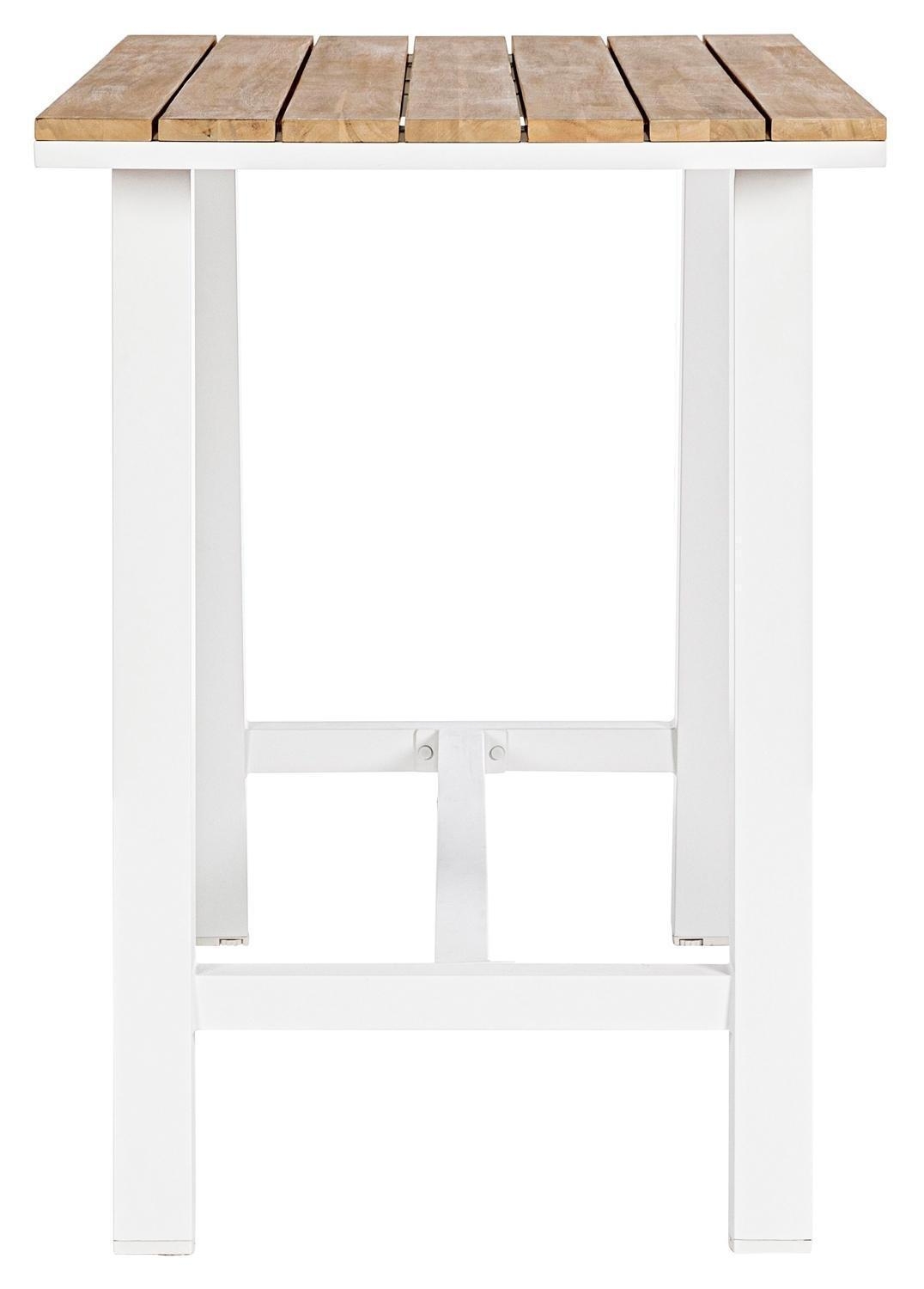 Die Tischplatte besteht aus lackiertem Aluminium in schöner Holzoptik. Das Gestell ist aus pulverbeschichtetem Aluminium in weiß. Gartenmöbel aus Aluminium sind besonders pflegeleicht. Aluminium verbindet sehr geringes Gewicht mit Langlebigkeit und hoher Resistenz gegen Witterungseinflüsse. Gartenmöbel aus dem Leichtmetall Aluminium sind aufgrund ihres geringen Gewichts leicht zu handhaben. Das rostfreie Aluminium erhält durch die hochwertige Beschichtung ein edles Oberflächenfinish, welches es unempfindlich gegen Witterungseinflüsse und absolut pflegeleicht macht.