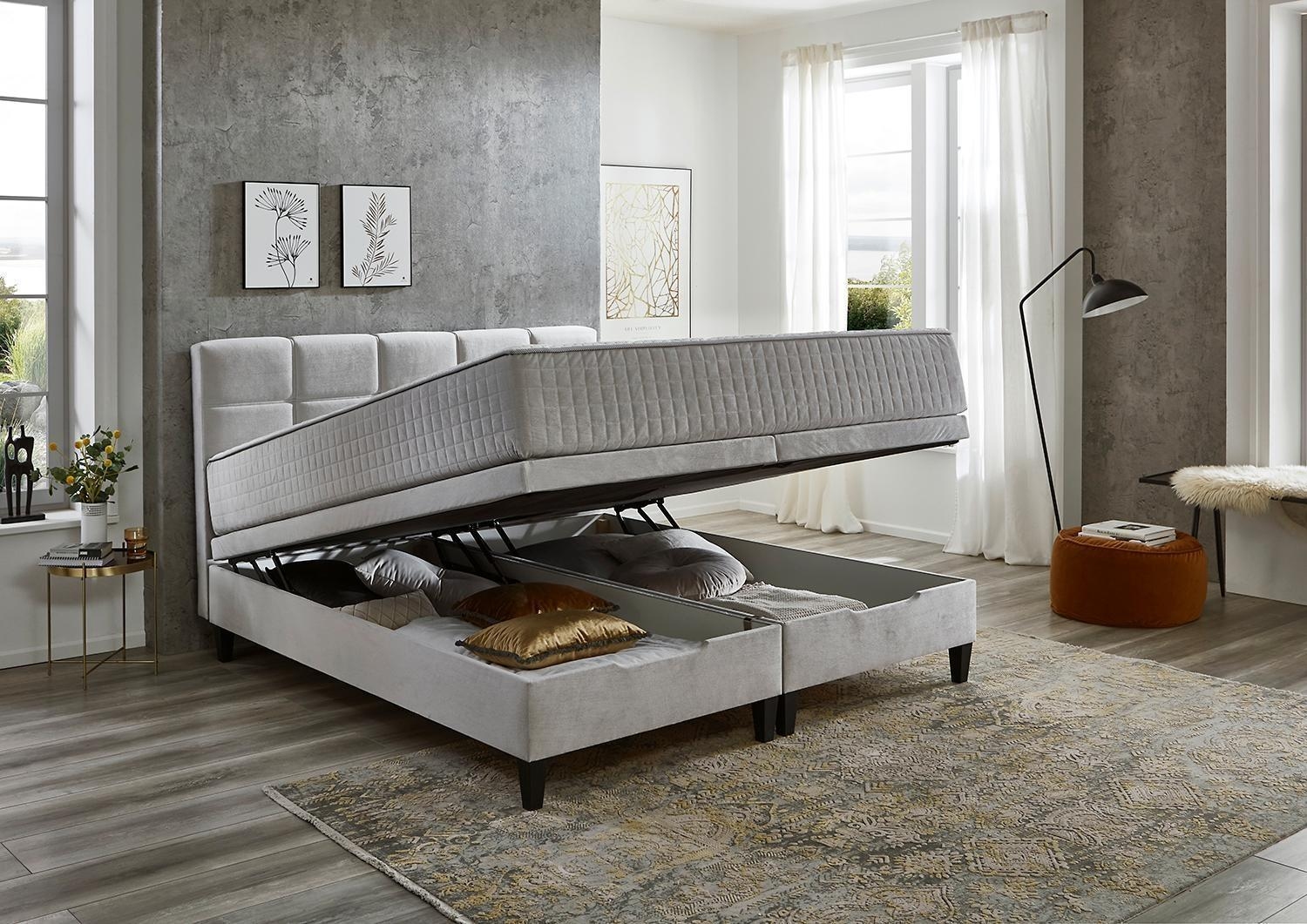 180 x 200 cm - Hellgrau - Webstoff - mit Bettkästen