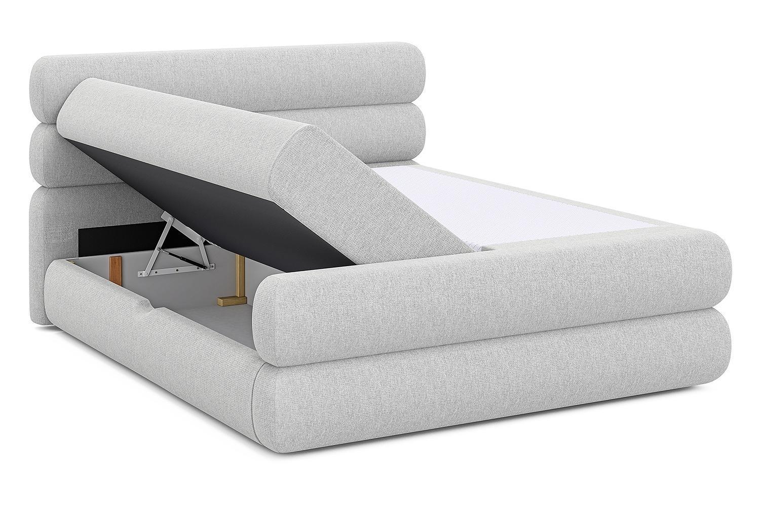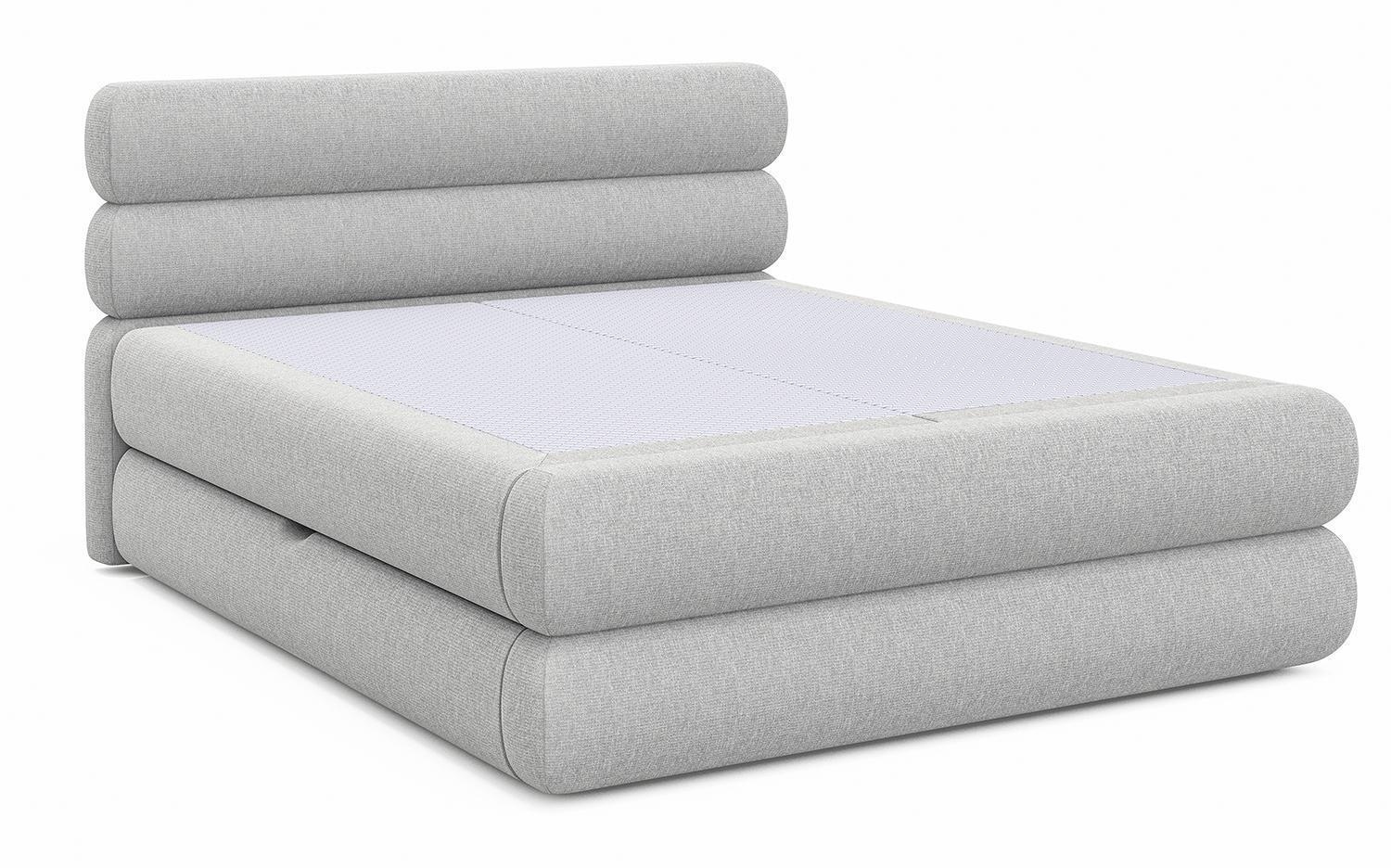- Boxspringbett mit Webstoffbezug in Hellgrau