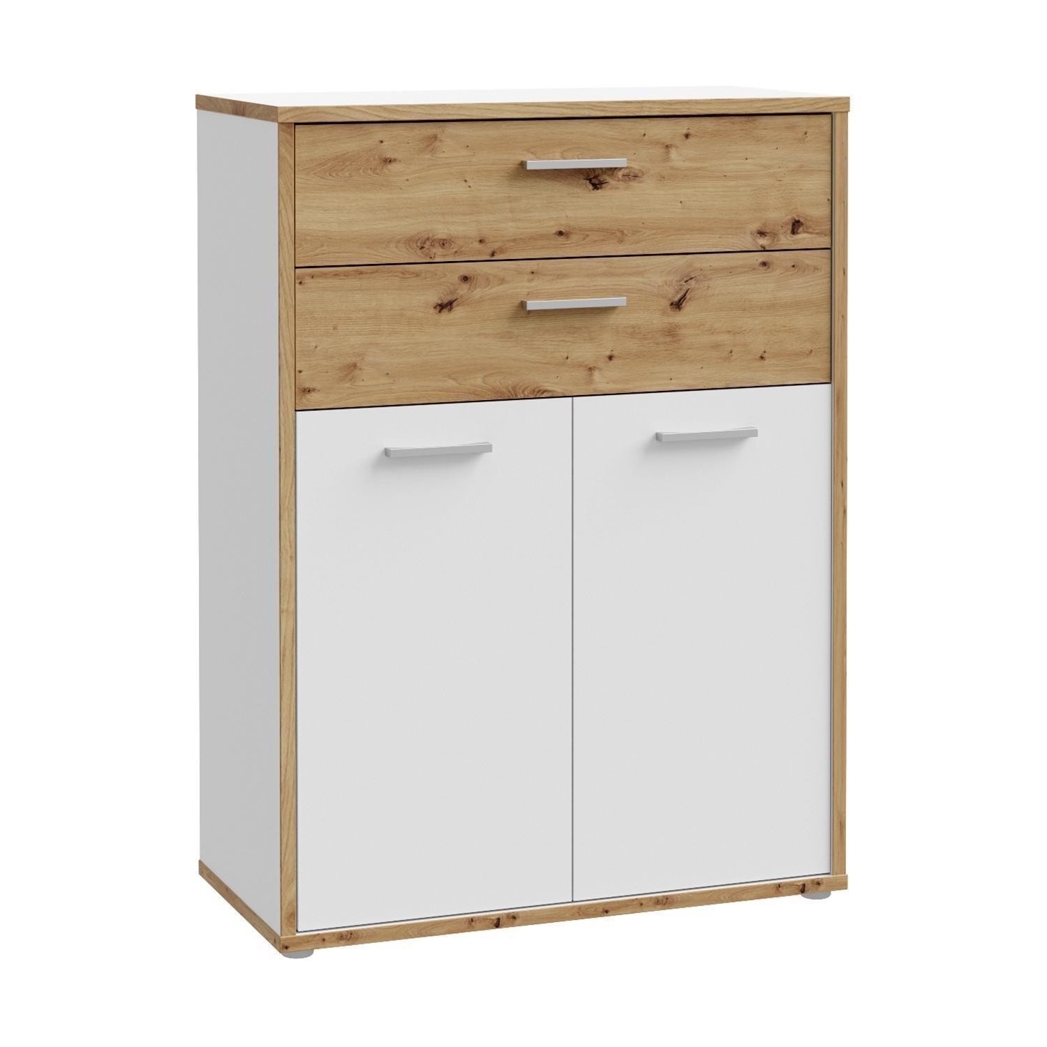 85 x 115 cm - 2 Türen - 2 Schubladen - Artisan Eiche Dekor - Weiß