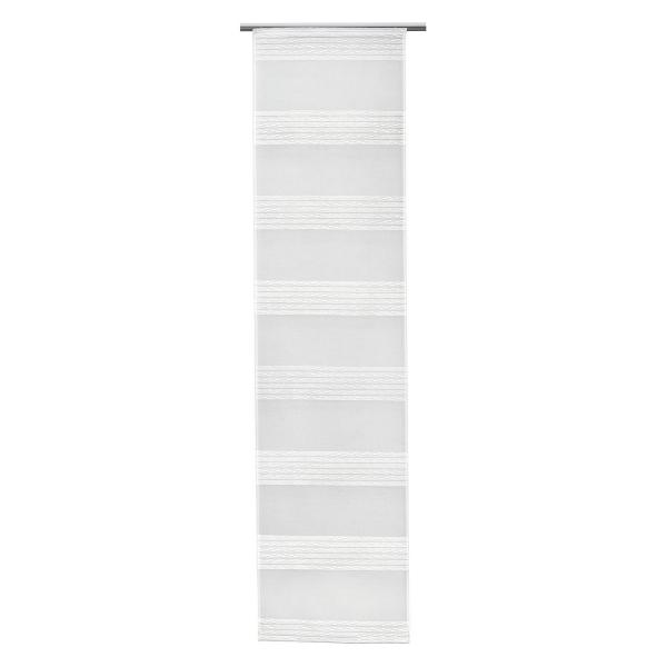 Der Flächenvorhang TOREL der Marke casa NOVA ist in der Farbe Creme erhältlich. Er besteht aus Polyester und ist mit Streifenmustern versehen. Die Lieferung erfolgt inklusive Technik zur Anbringung. Der Vorhang hat eine Länge von 245 cm und eine Breite von 60 cm.