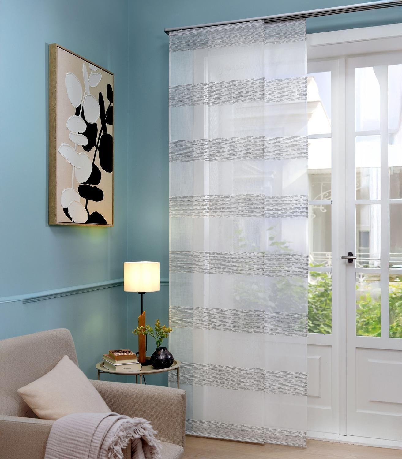 Der Flächenvorhang TOREL der Marke casa NOVA ist in der Farbe Taupe erhältlich. Er besteht aus Polyester und ist mit Streifenmustern versehen. Die Lieferung erfolgt inklusive Technik zur Anbringung. Der Vorhang hat eine Länge von 245 cm und eine Breite von 60 cm.