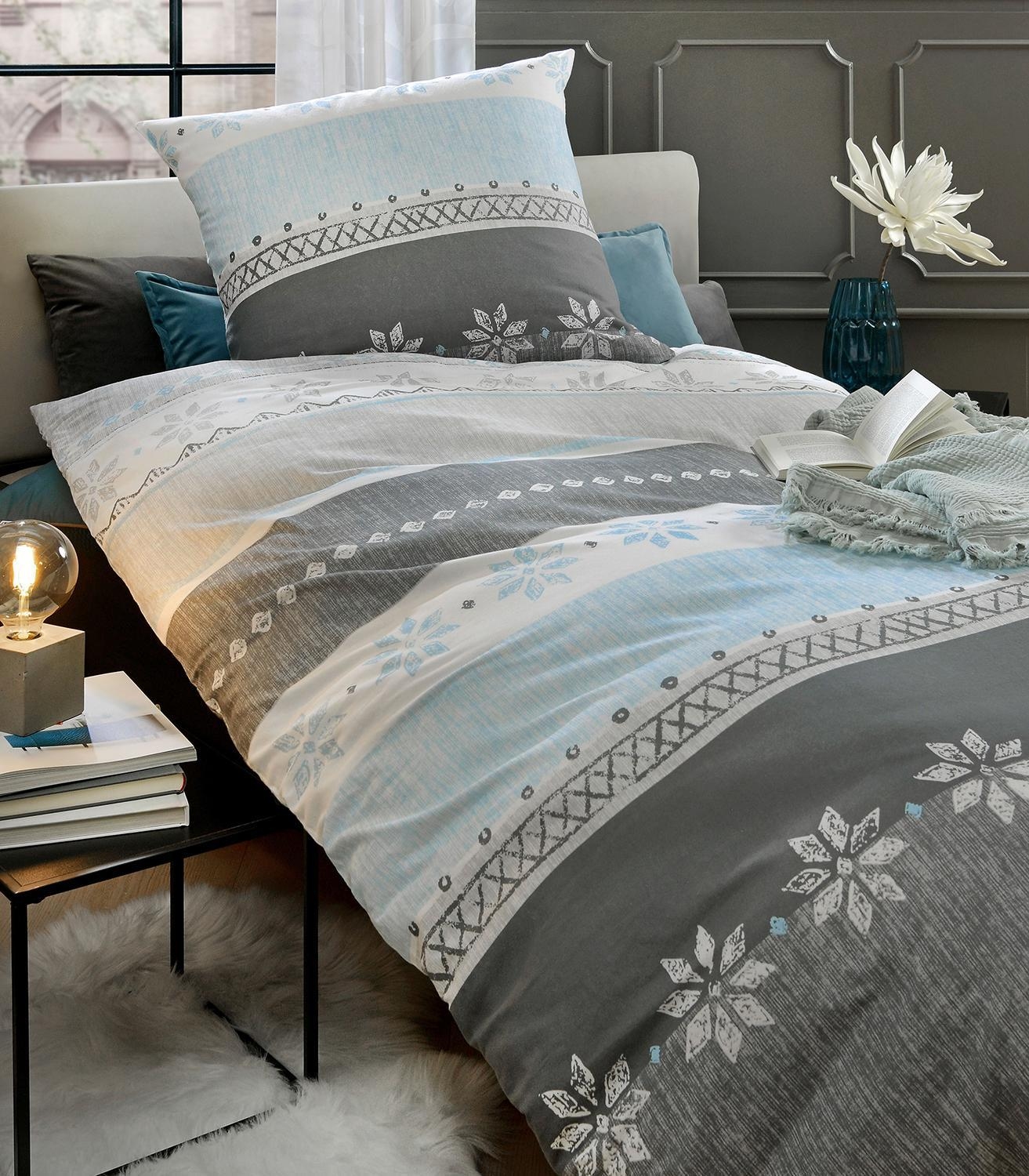 - Flanell-Bettwäsche in Grau und Blau