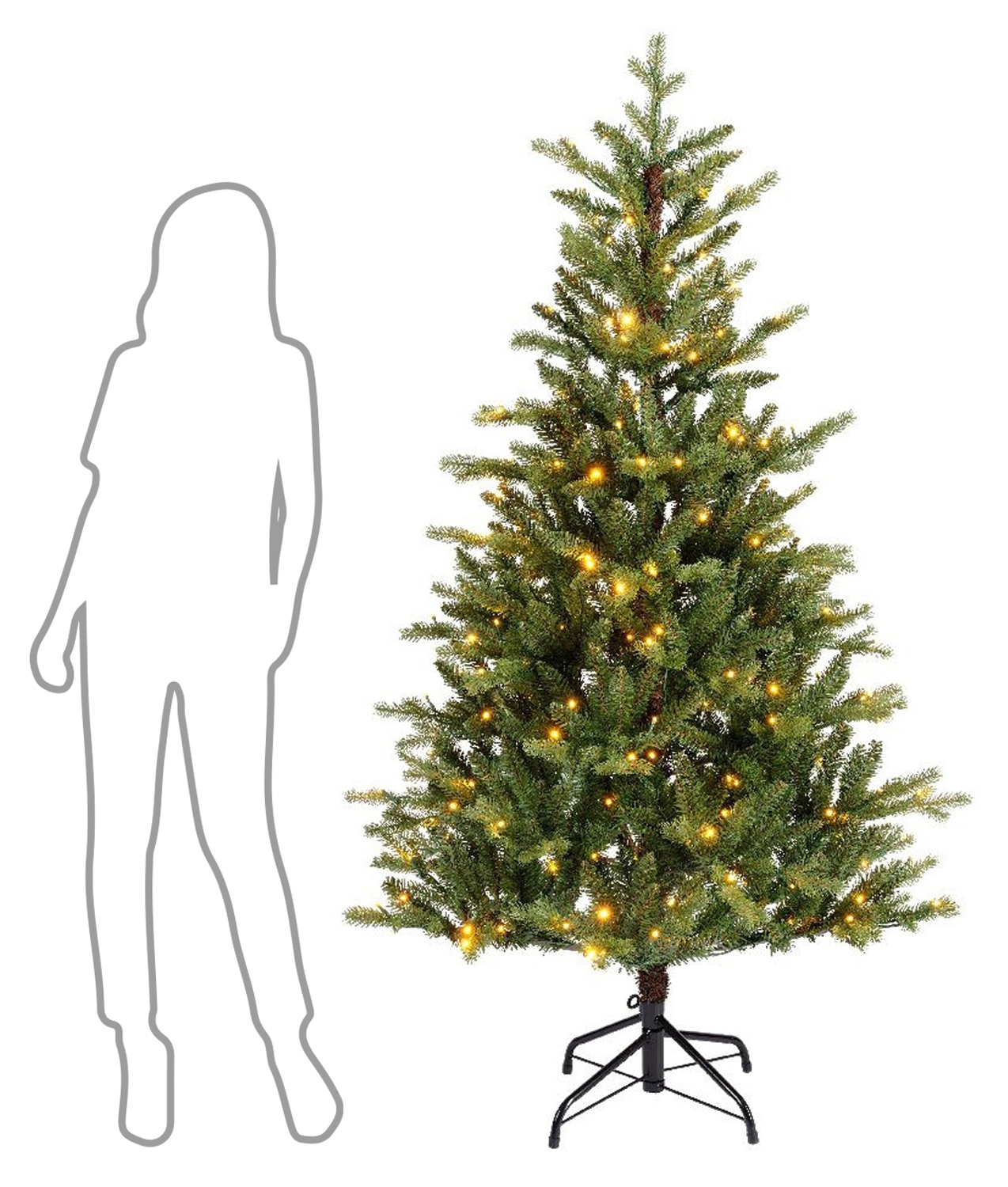 Der künstliche Tannenbaum ALLISON von casa NOVA bringt weihnachtliche Stimmung ins Haus. Gefertigt aus grünem Kunststoff mit einem Standfuß aus Metall in schwarz, beeindruckt er durch seine Tannennadeln in Echtnadeloptik und die 320 LEDs, die für stimmungsvolle Beleuchtung sorgen. Der Baum ist nadelfrei und muss nicht gegossen werden, was ihn besonders pflegeleicht macht. Mit einer Höhe von 180 cm bietet er eine imposante Erscheinung. Das 500 cm lange Kabel in grün mit Fußschalter ermöglicht eine bequeme Bedienung. Die Micro-LEDs haben 8 Funktionen und sind in einem Abstand von je 23 cm angeordnet. Insgesamt verfügt der Baum über 1234 Spitzen und 38 Zweige.
