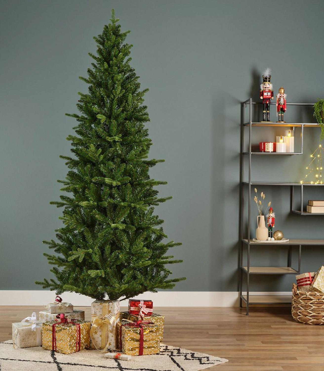 Der künstliche Tannenbaum KILLINGTON von casa NOVA besteht aus grünem Kunststoff und ist mit einem stabilen schwarzen Metallgestell ausgestattet. Mit einer Höhe von 210 cm, einem Durchmesser von 103 cm und 52 Zweigen bietet der Baum eine großzügige und gleichmäßige Struktur. Die 1138 Spitzen sind in Echtnadel-Optik gestaltet, während der Baum nadelfrei ist und kein Gießen erfordert. Dadurch ist er pflegeleicht und lässt sich über mehrere Jahre hinweg wiederverwendbar einsetzen.