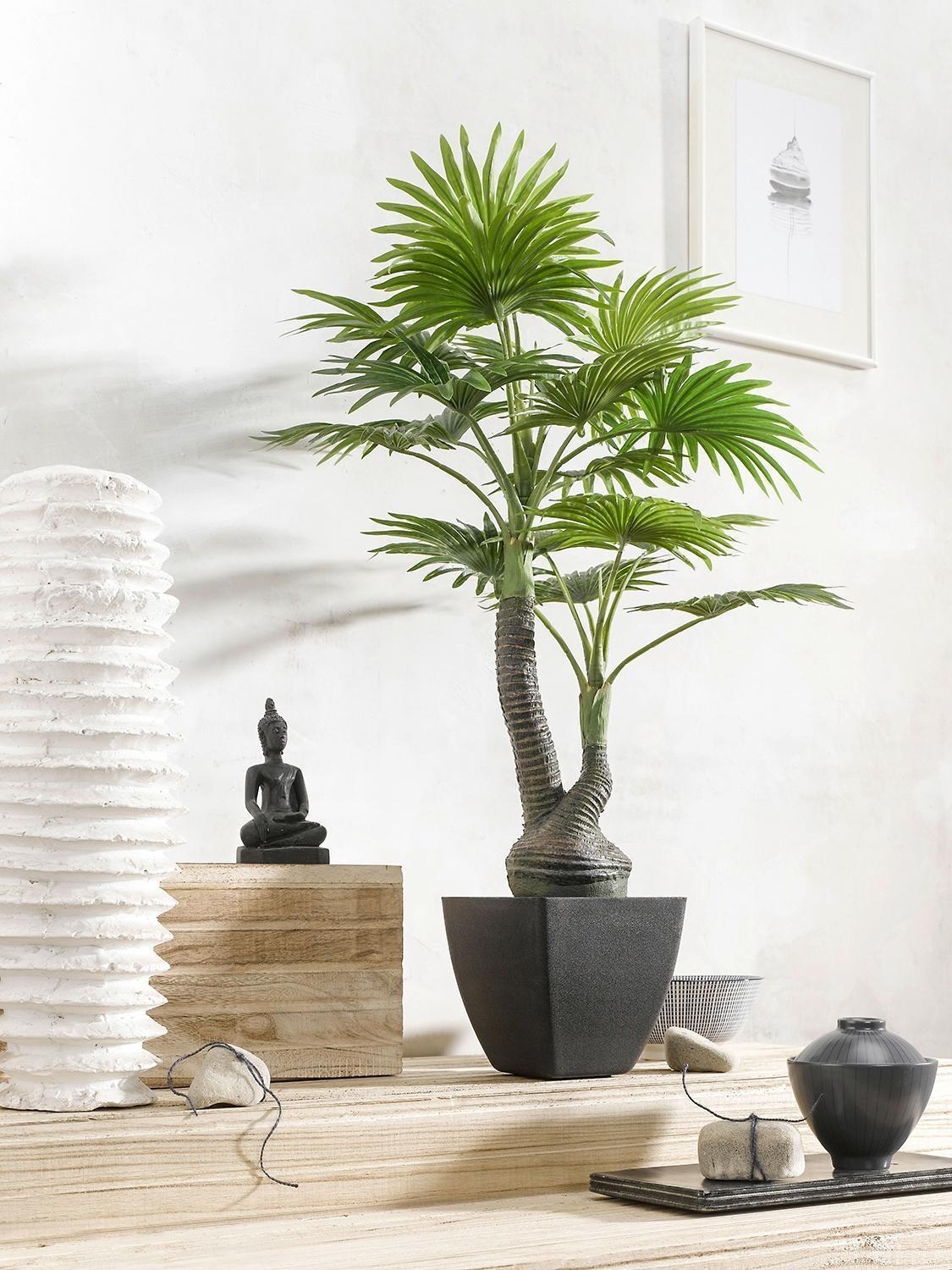 Der künstliche Farn FERNELLAS von casa NOVA überzeugt mit seiner naturgetreuen Optik in sattem Grün und einer Höhe von 70 cm. Die detailreichen Blätter und die Erdoberfläche im schwarzen Kunststofftopf bestehen aus pflegeleichtem Kunststoff, während Stamm und Äste aus einer Kombination von Metall und Kunststoff gefertigt sind. Das Arrangement ist ideal für Wohnräume, Büros oder Flure geeignet und sorgt ganz ohne Pflegeaufwand für frisches Grün. Inklusive passendem Pflanzgefäß.