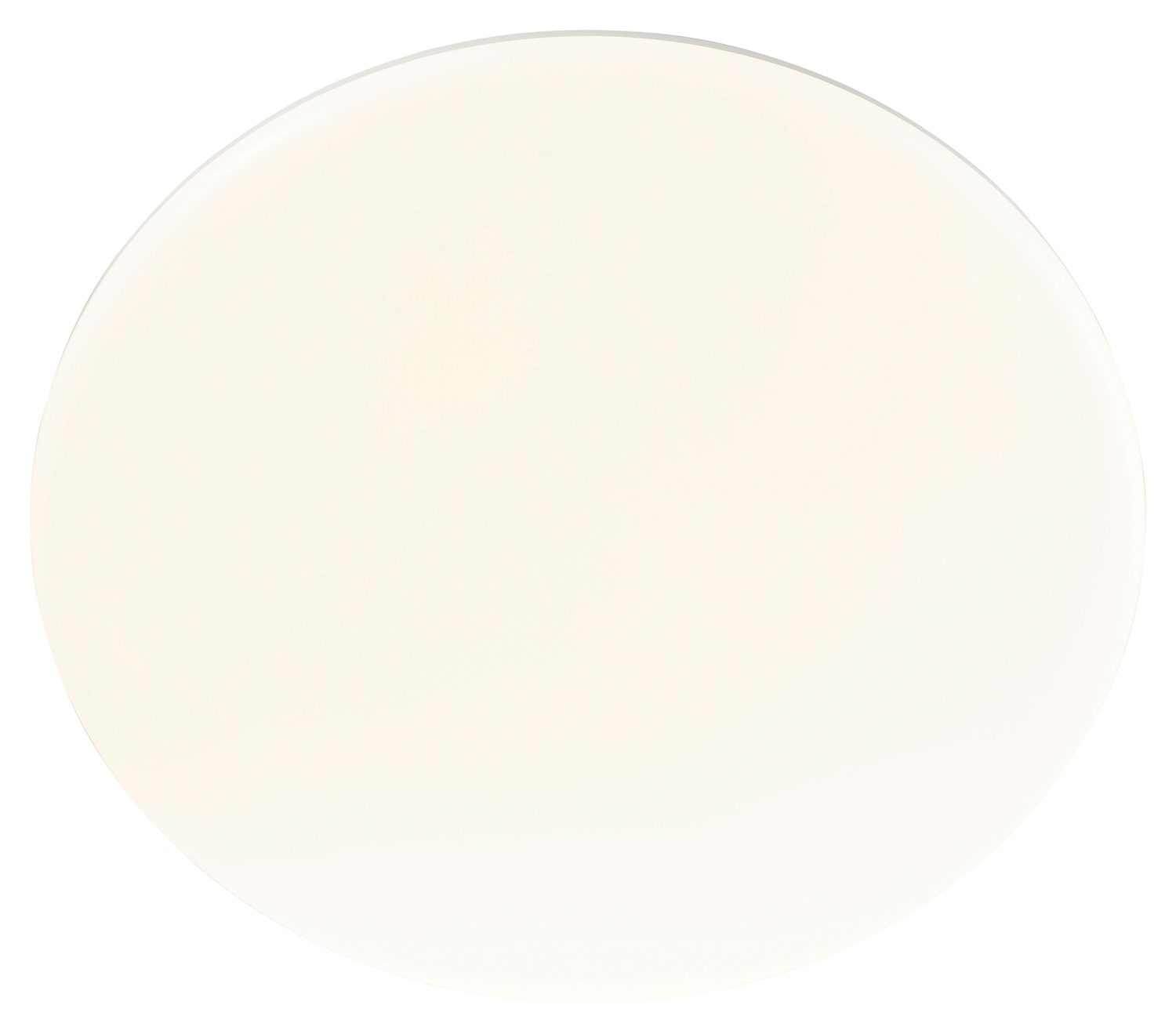 Die weiße Deckenleuchte mit integriertem LED-Leuchtmittel verfügt über einen Durchmesser von 45 cm und einer flachen Höhe von 4,5 cm. Das Metallgestell und der Kunststoffschirm verleihen der Leuchte ein modernes Erscheinungsbild. Mit 45 Watt Leistung erzeugt das fest verbaute LED-Leuchtmittel ein angenehmes Licht von 4000 K und beeindruckende 4500 lm Helligkeit. Die Schutzart IP54 macht die Deckenleuchte für den Außenbereich geeignet.