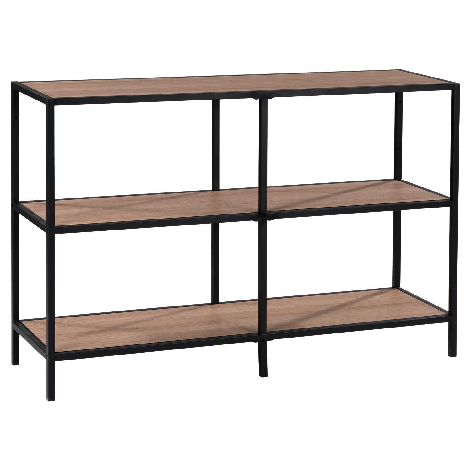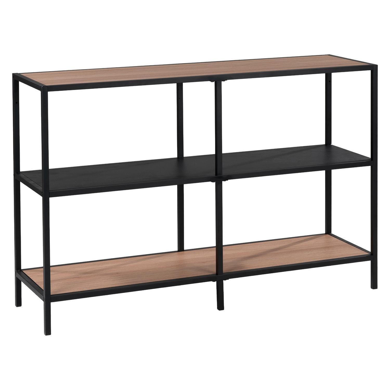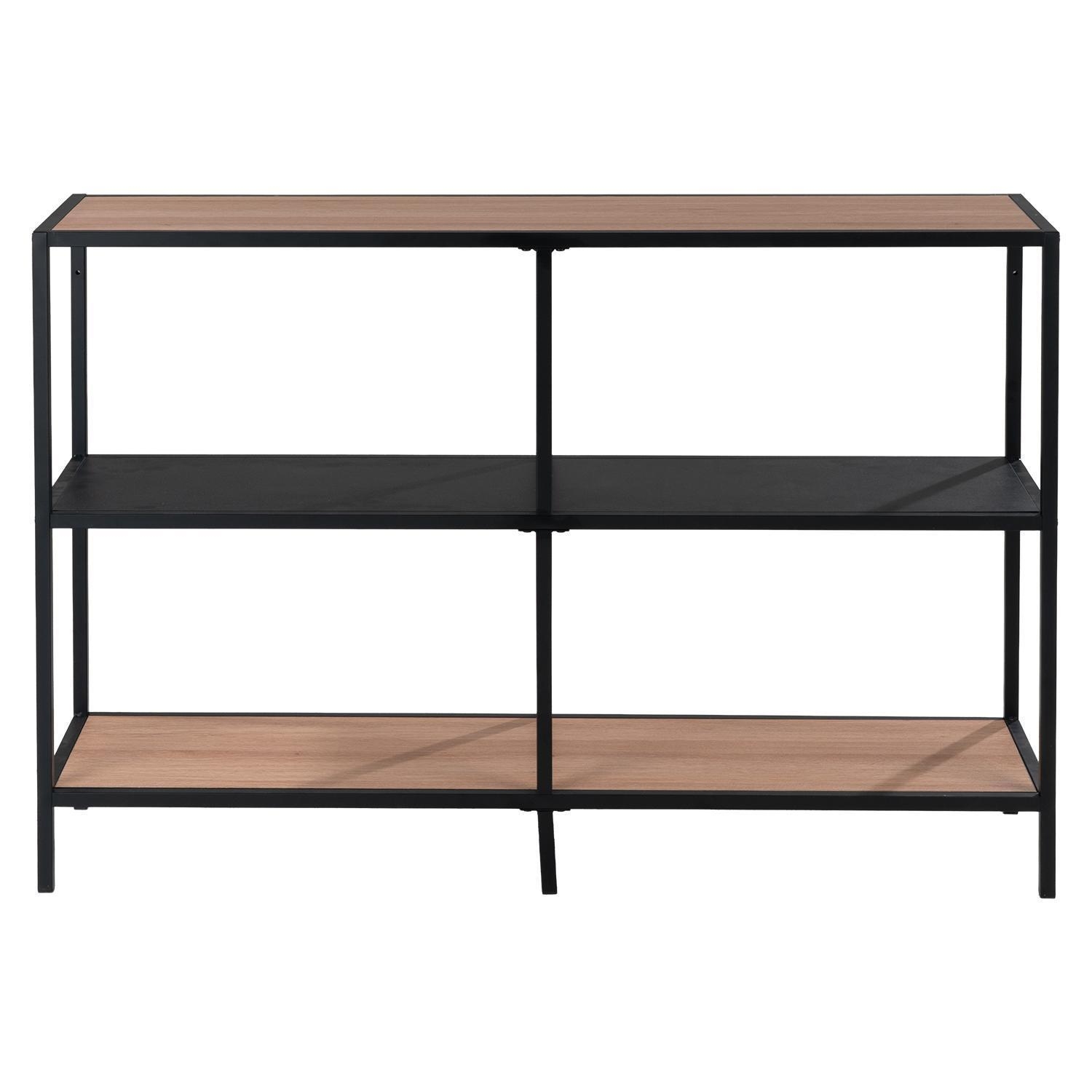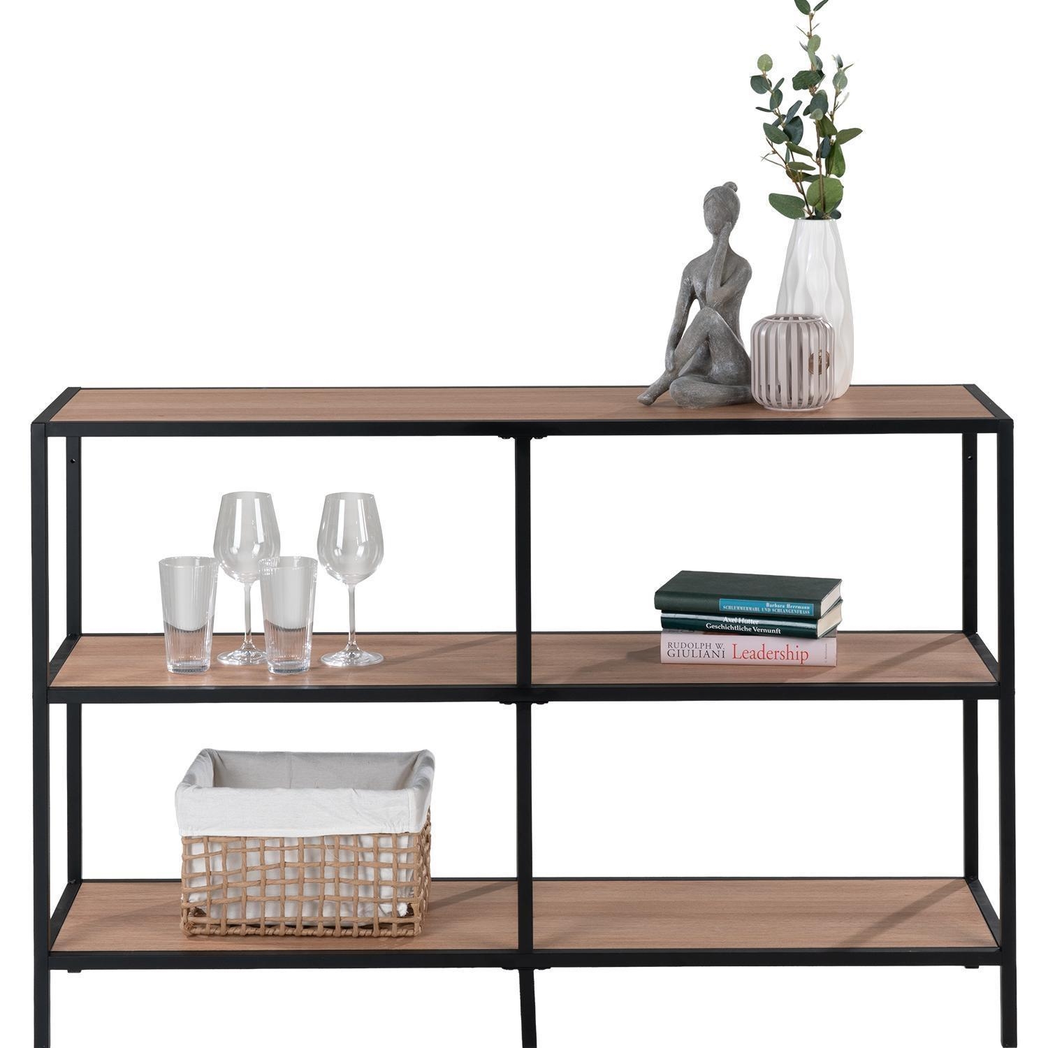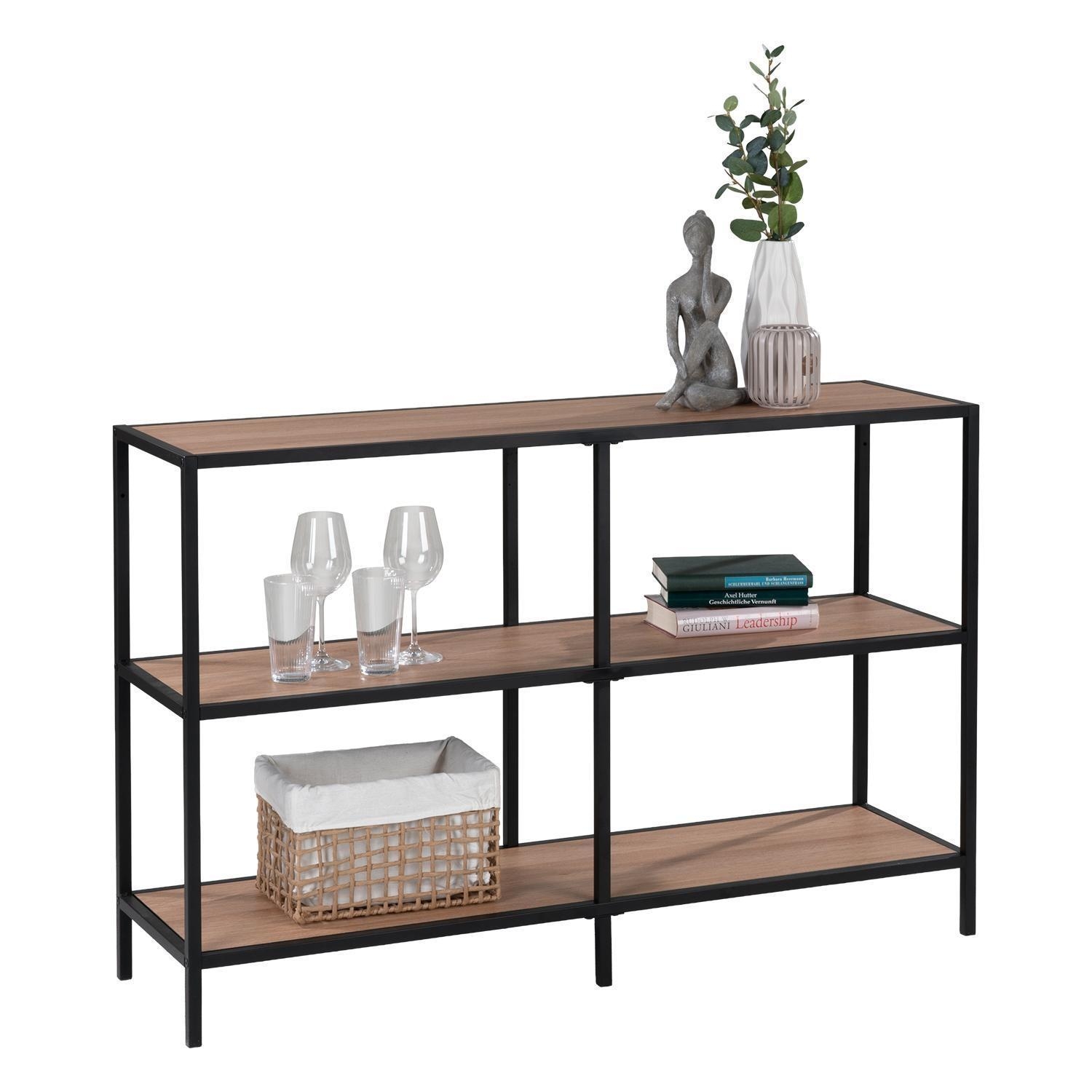 120 x 80 cm - Eiche Dekor - Schwarz - Metall - mit 3 Fächern