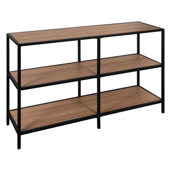 Das Regal RAMON der Marke casa NOVA besteht aus Metall in Schwarz. Es ist mit drei offenen Fächern ausgestattet. Die Böden sind in Eiche Dekor und Schwarz gehalten und lassen sich wenden. Das Regal bietet viel Stauraum. Die Maße betragen 120 cm in der Breite, 80 cm in der Höhe und 34 cm in der Tiefe.