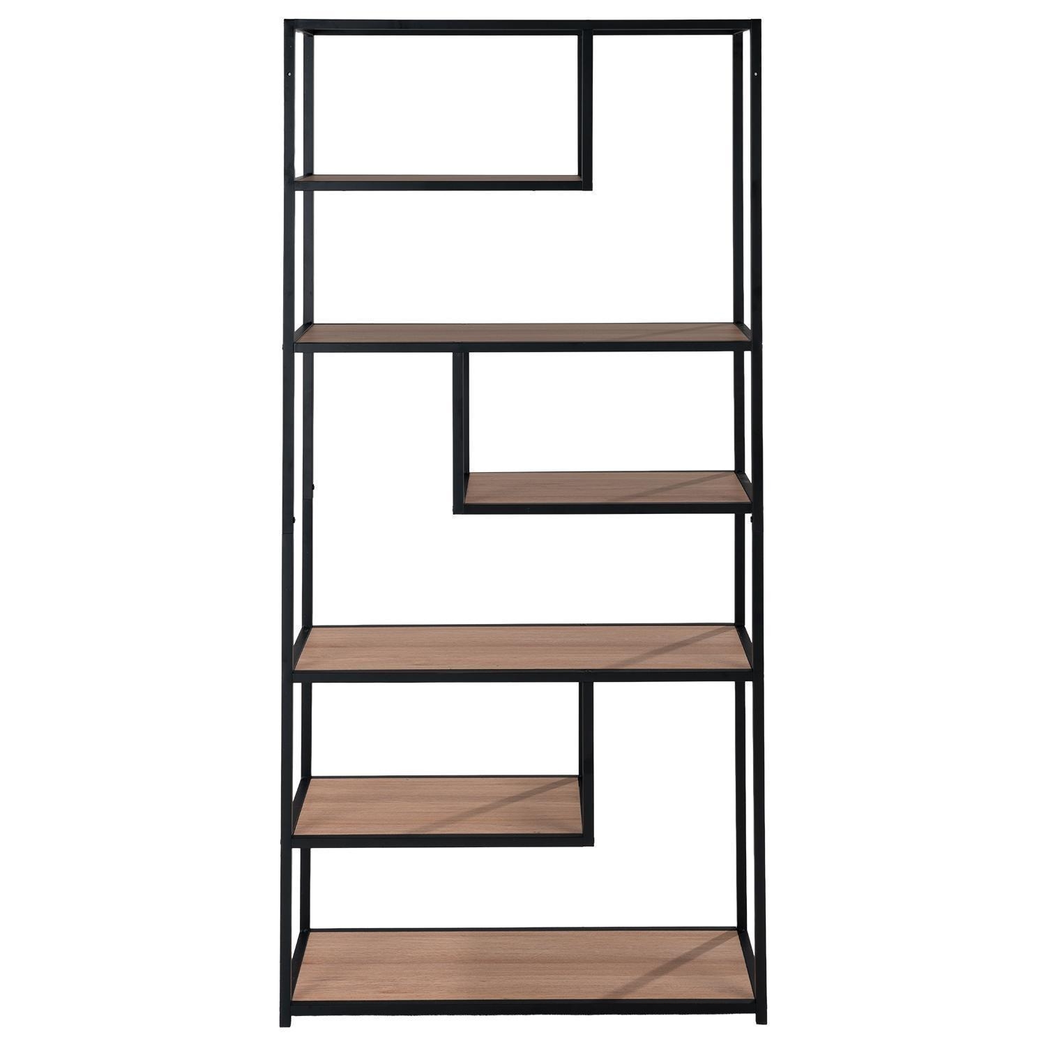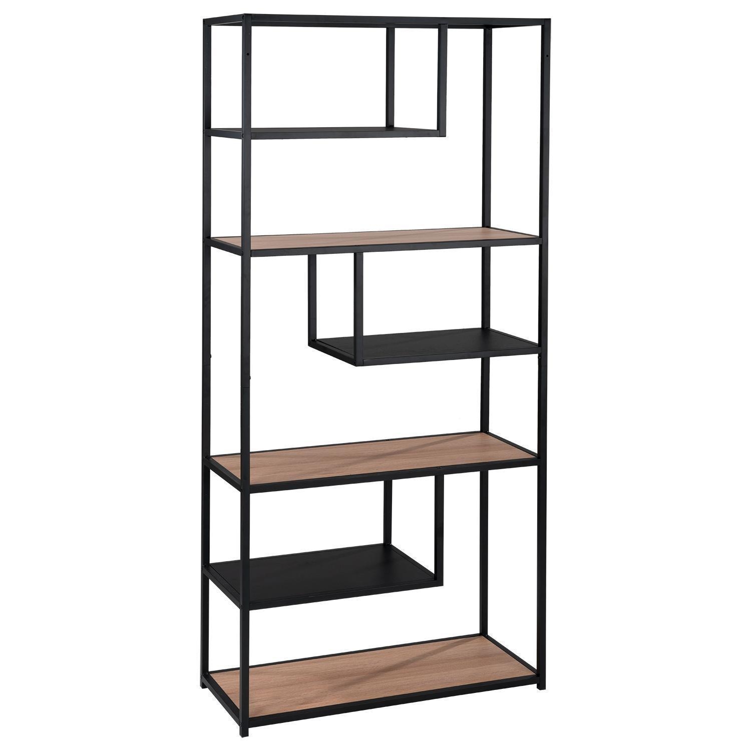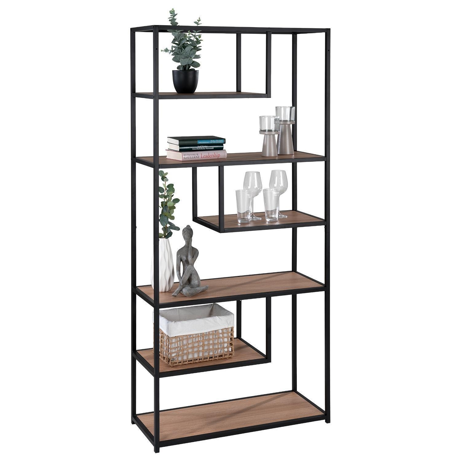 80 x 180 cm - Eiche Dekor - Schwarz - Metall - mit 6 Fächern