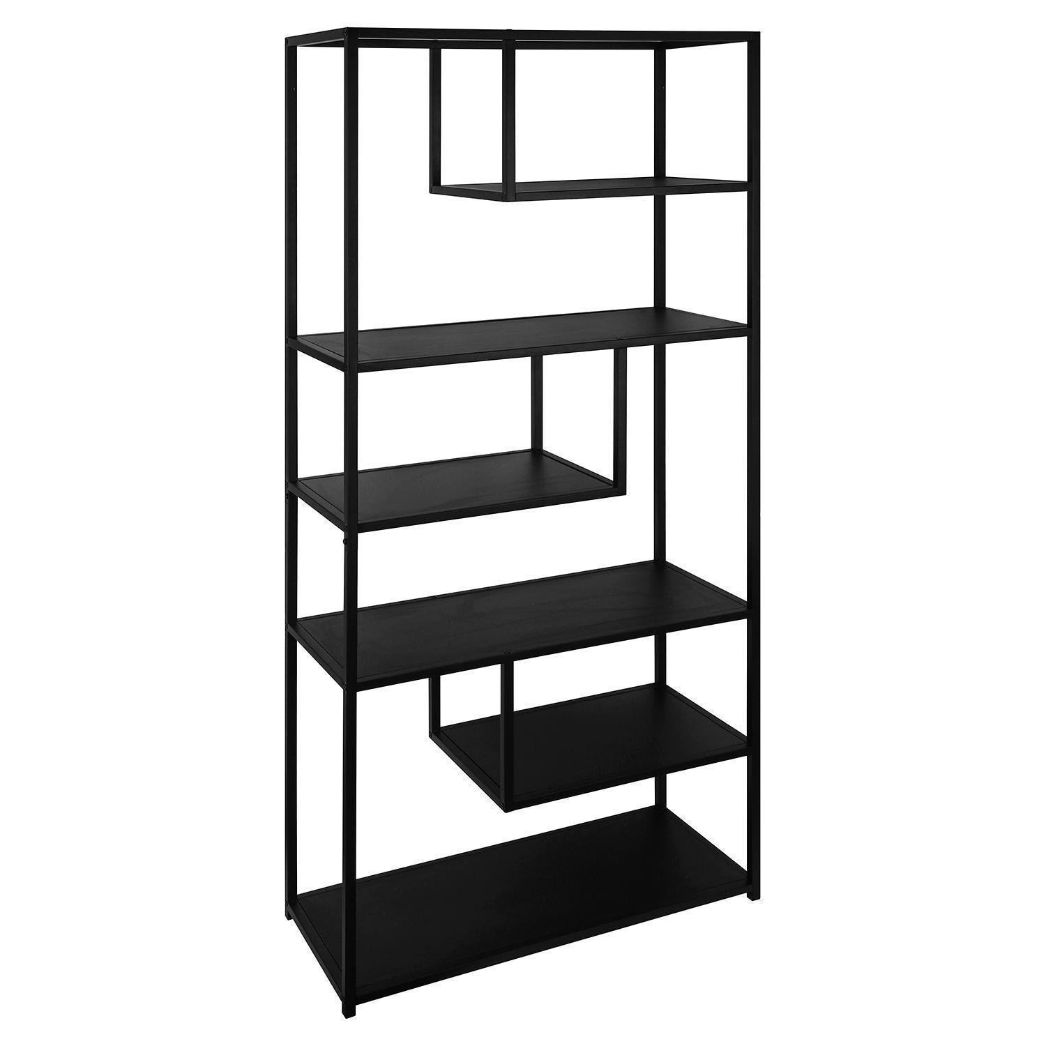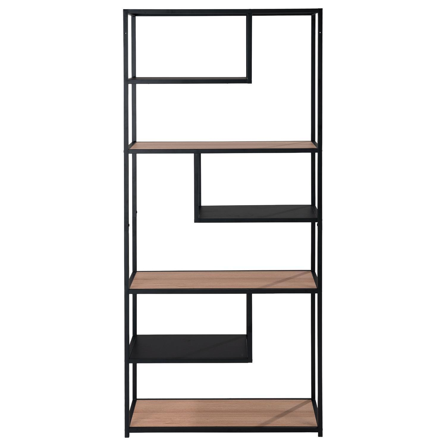 Das Regal RAMON der Marke casa NOVA besteht aus Metall in Schwarz. Es ist mit sechs offenen Fächern ausgestattet. Die Böden sind in Eiche Dekor und Schwarz gehalten und lassen sich wenden. Das Regal bietet viel Stauraum. Die Maße betragen 80 cm in der Breite, 180 cm in der Höhe und 34 cm in der Tiefe.