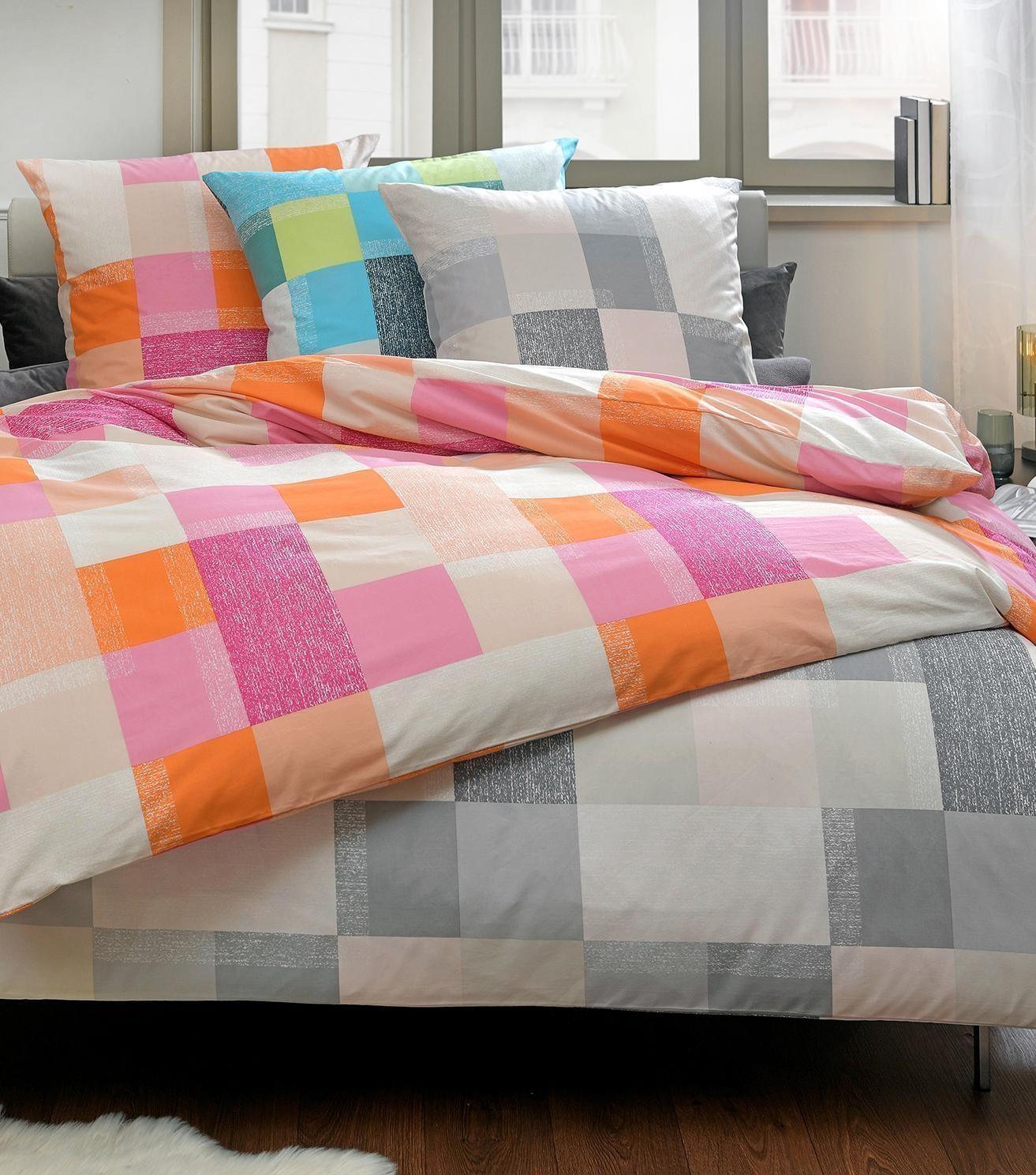- Renforce-Bettwäsche in Pink, Orange und Weiß