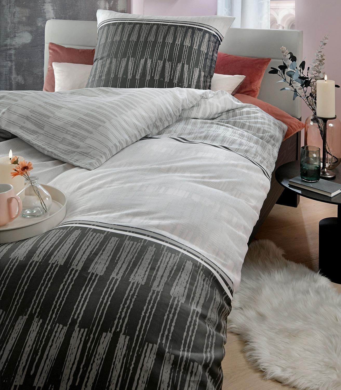 135 x 200 cm - Grau - Schwarz - Baumwolle - mit Reißverschluss