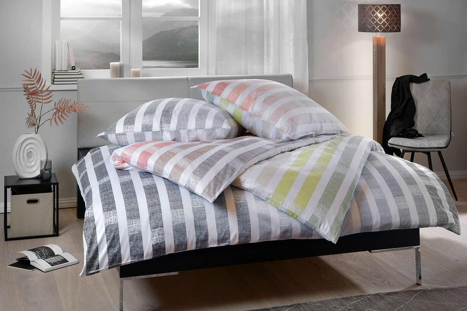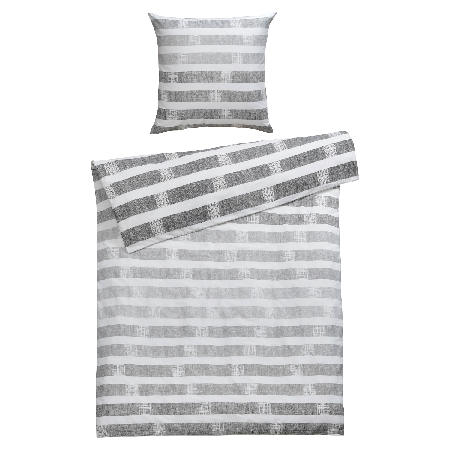 - Satin-Bettwäsche aus Baumwolle in grau und weiß