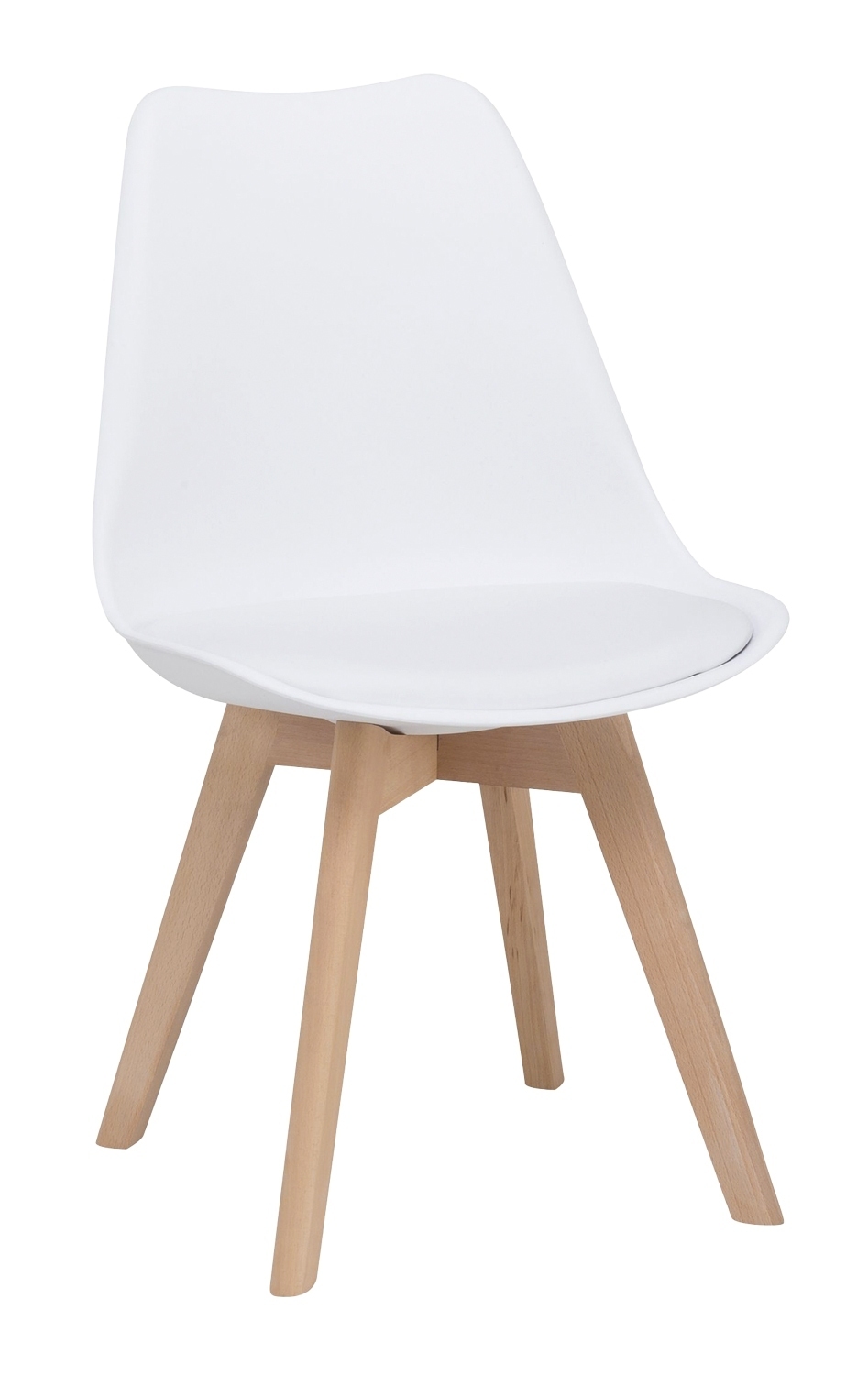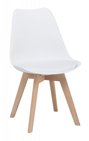 Der Stuhl LUKAS der Marke casa NOVA bietet mit seiner Sitzschale aus weißem Kunststoff und den massiven Buchenholzbeinen in Braun ein modernes Design. Das Sitzpolster aus weißem Kunstleder sorgt für Komfort. Vielseitig einsetzbar in Küche, Ess- und Wohnzimmer, ist er belastbar bis zu 150 kg. Mit einer Breite von 49 cm, einer Höhe von 84 cm und einer Tiefe von 51 cm passt er gut in verschiedene Raumkonzepte.