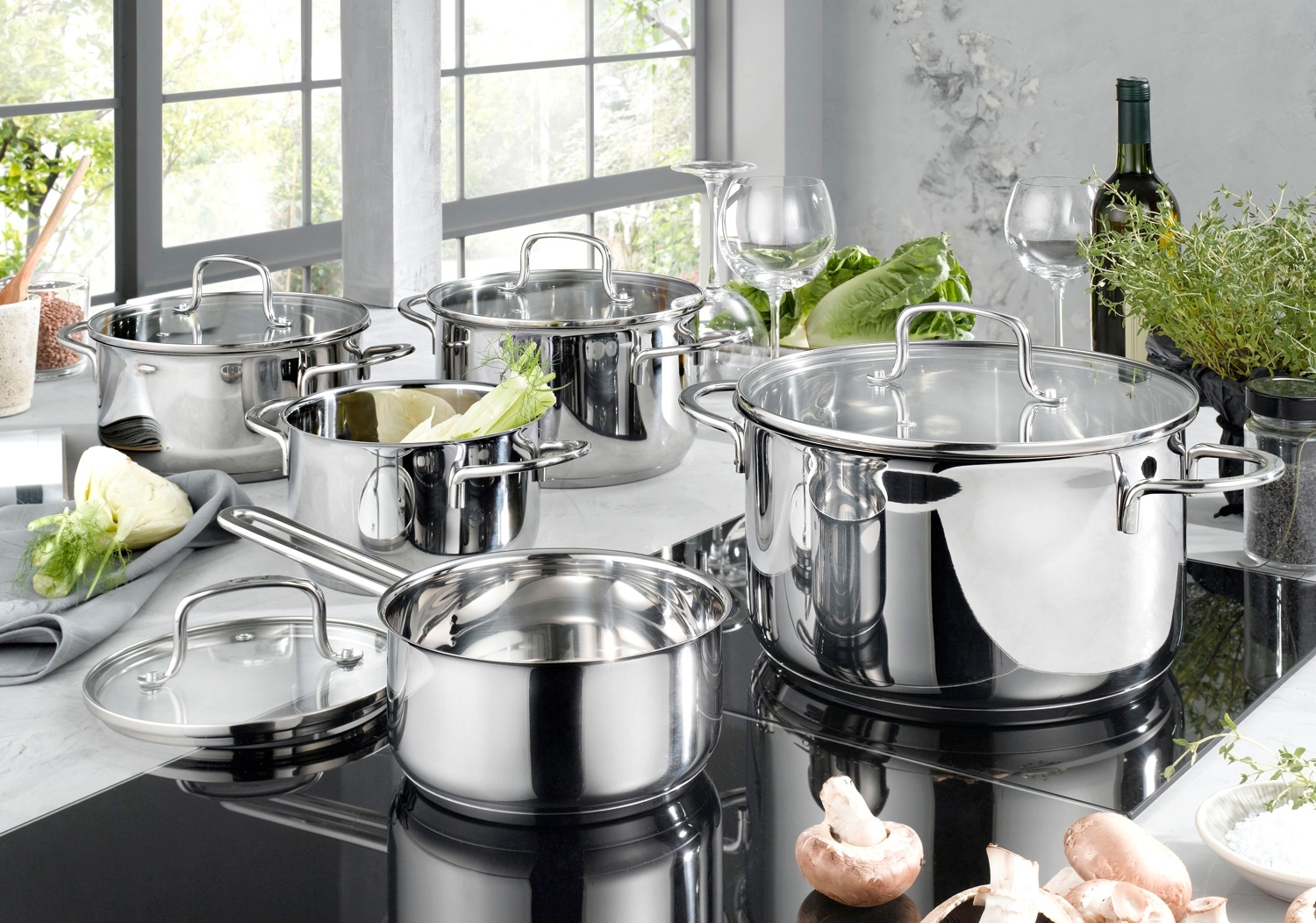 - Topfset aus poliertem Edelstahl