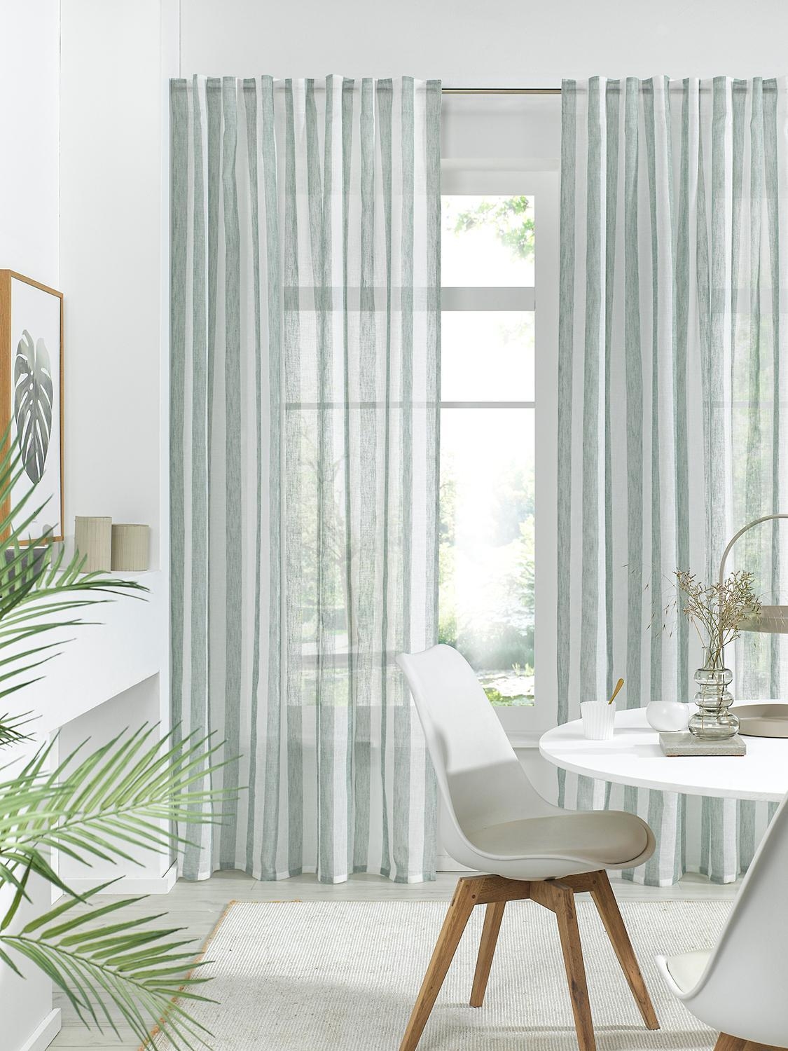 140 x 245 cm - Salbeigrün - breite Längsstreifen - halbtransparent