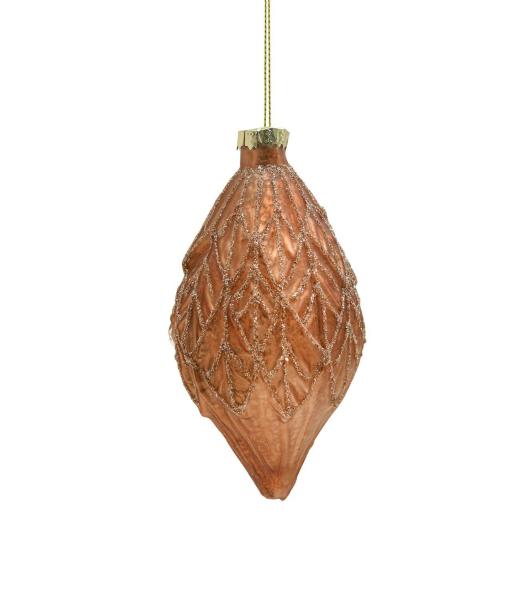 H 12 cm - Braun - Goldgelb - Glas - matt - mit Glitzermotiv - in Zapfenform