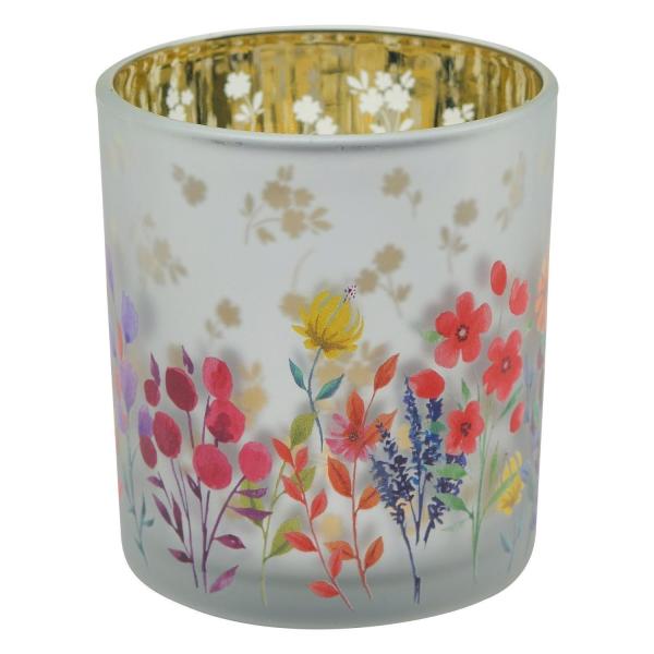 Das Windlicht MARETTE der Marke casa NOVA besteht aus Glas und hat eine Größe von 7,3 x 8 cm. Es ist für Teelichter und Stumpenkerzen geeignet und sorgt für eine stimmungsvolle Beleuchtung. Das Windlicht ist mit einem bunten Blumenmotiv gestaltet. Der Durchmesser beträgt 7,3 cm, die Höhe 8 cm. Die Lieferung erfolgt ohne Kerze.